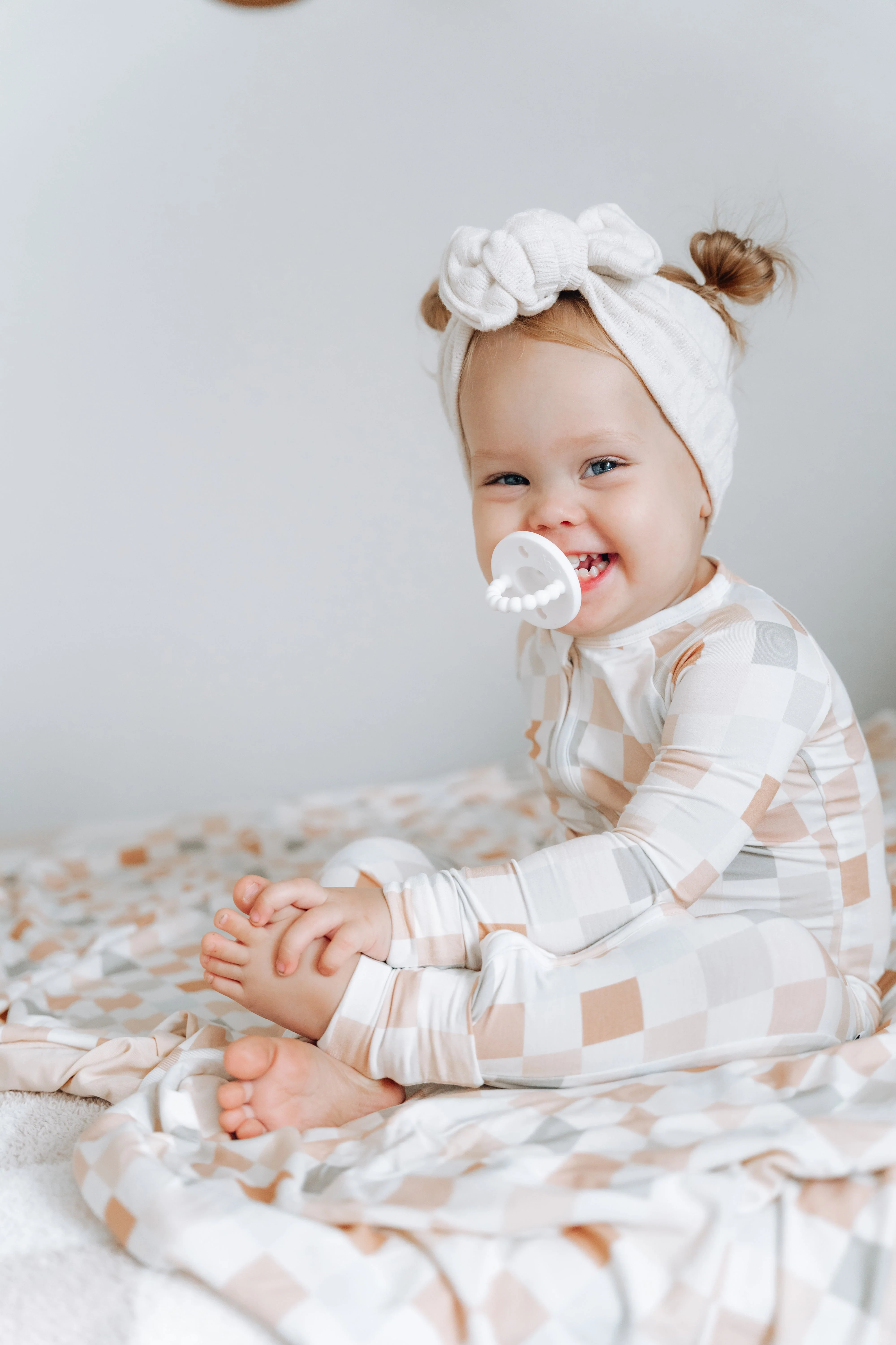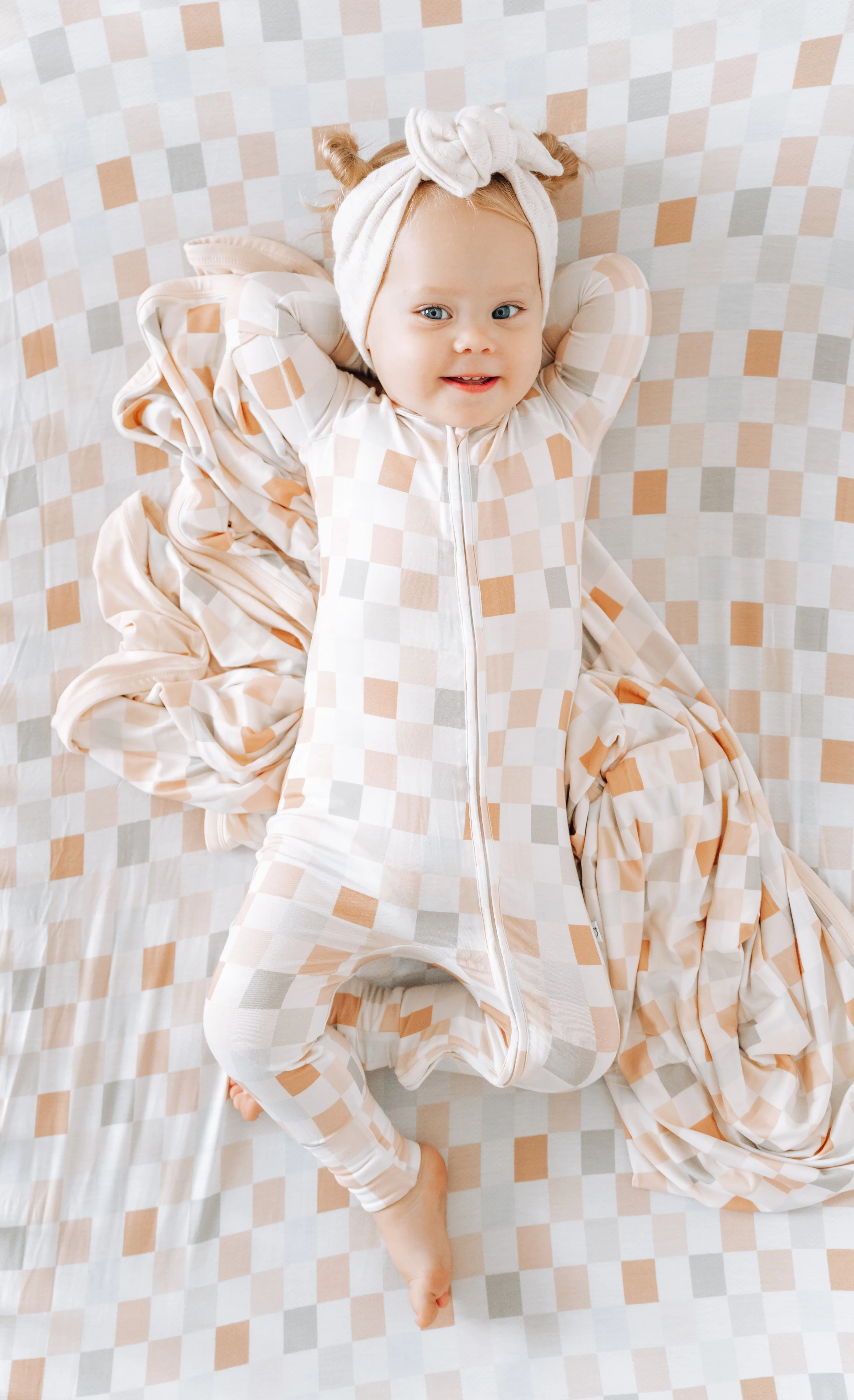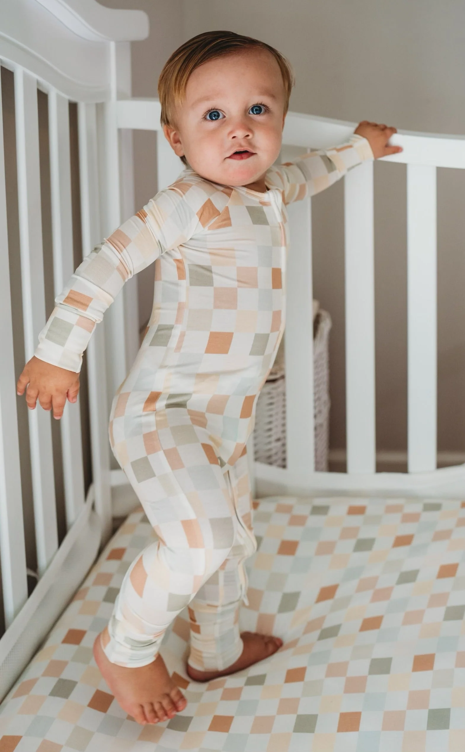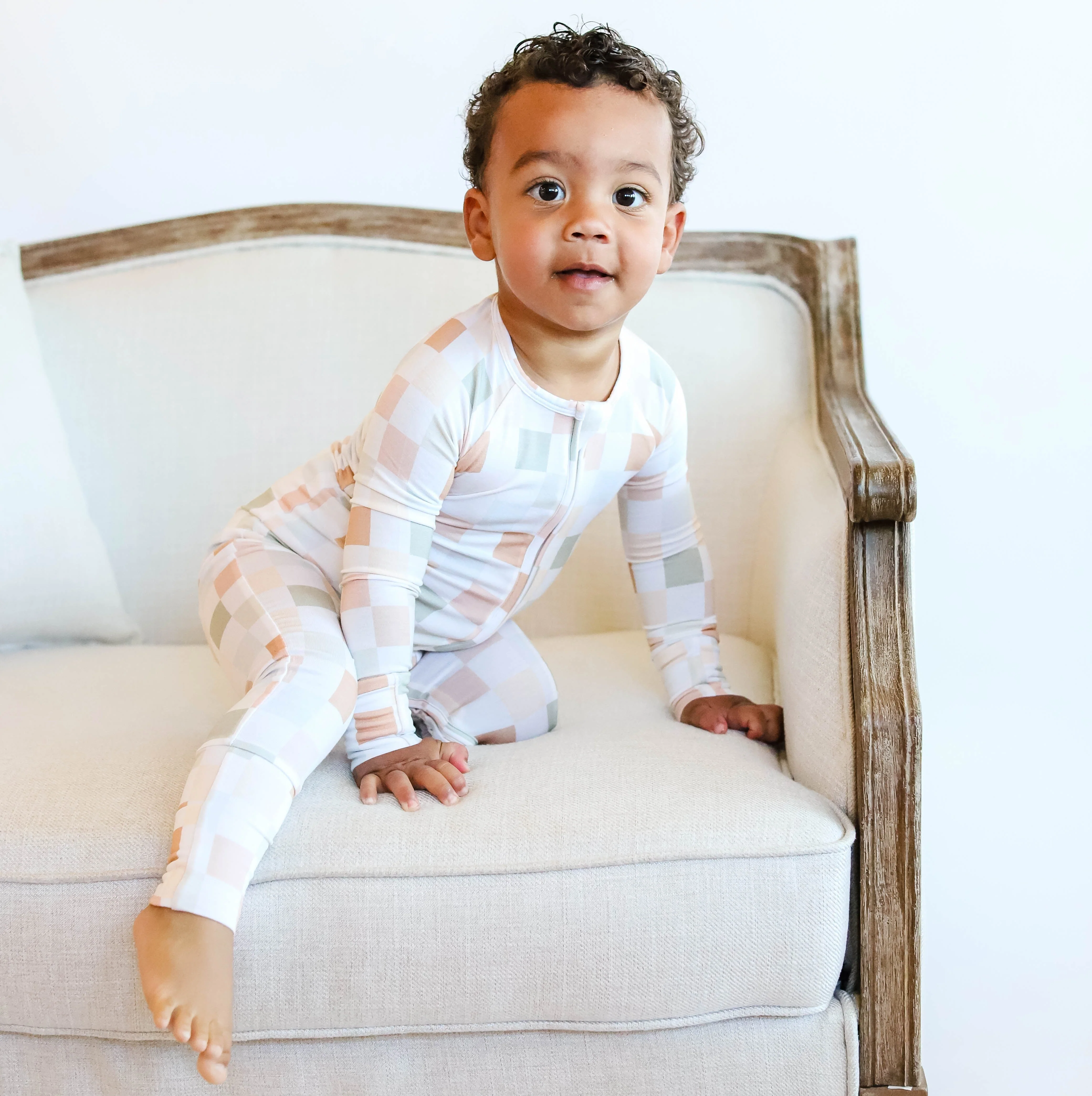 This Muted Checkers Dream Romper will have you dreaming sweet dreams of comfort and style! With its long sleeve romper, muted checkers print, and bamboo material, you'll be sure to stay cozy while looking chic. Now that's a checkmate for any occasion!