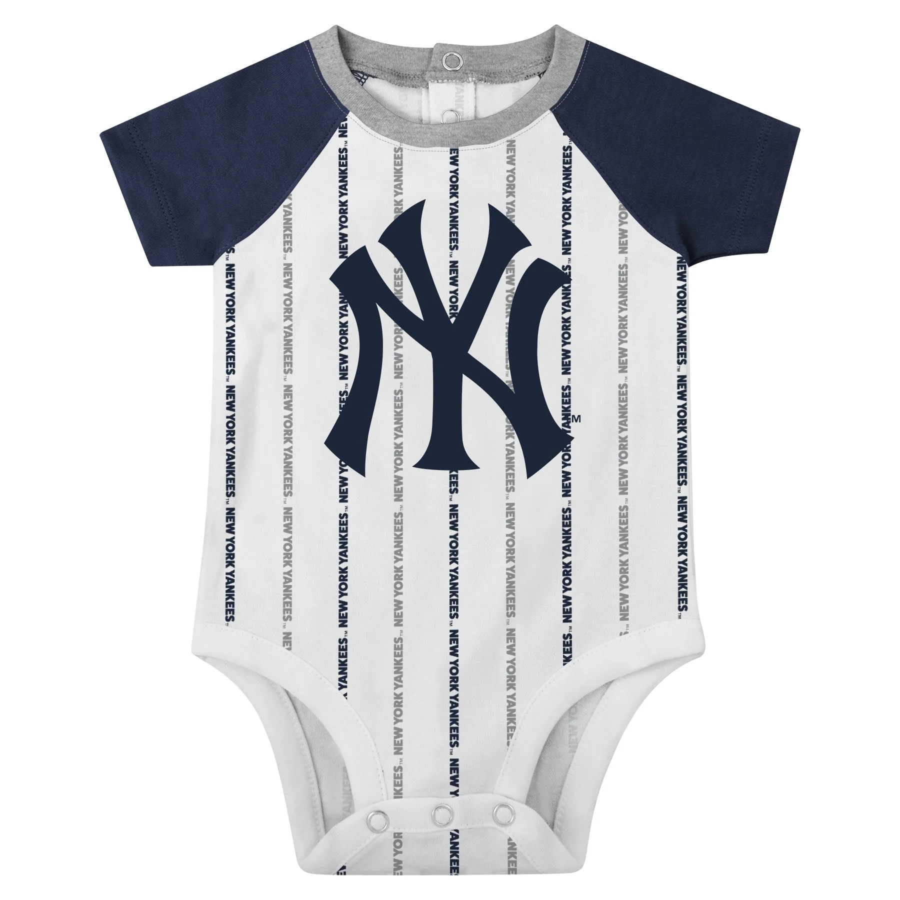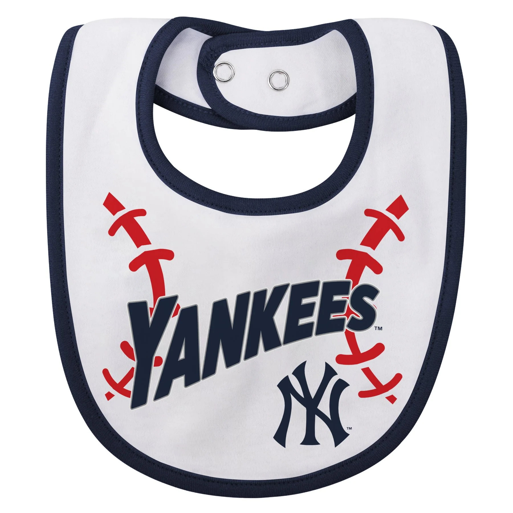Get your newest fan ready to cheer on the New York Yankees with this Base Hitter set. This adorable set features a bodysuit, bib and booties with classic New York Yankees details. The three-snap closure ensures easy changing and total comfort from the first pitch to the final inning.