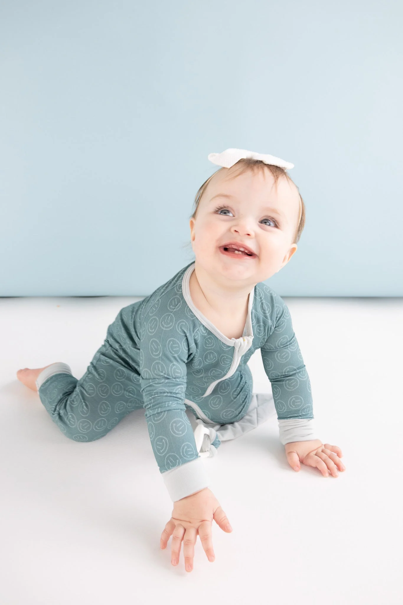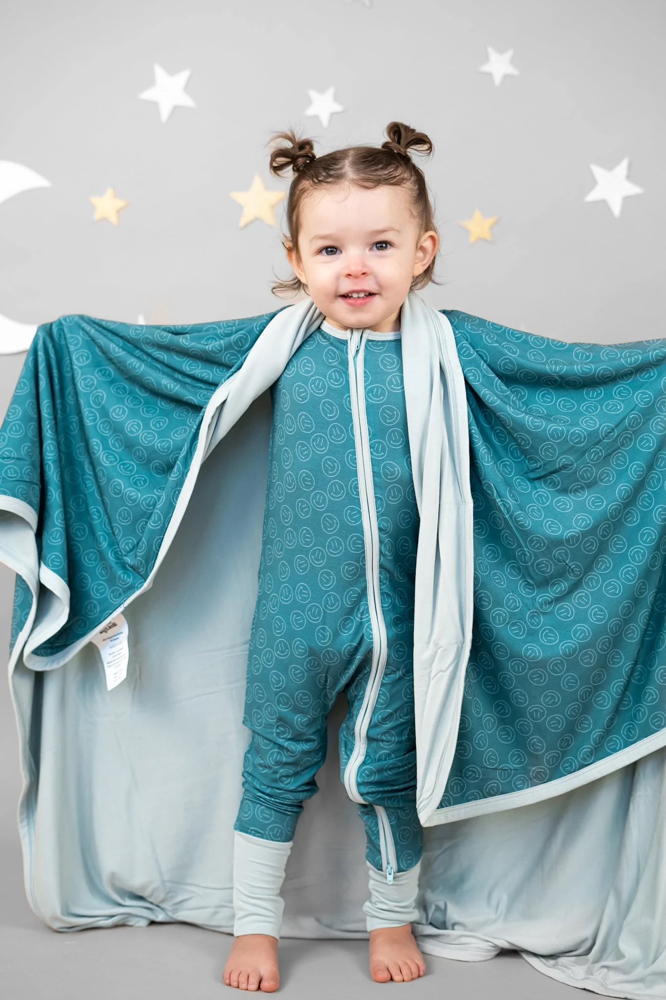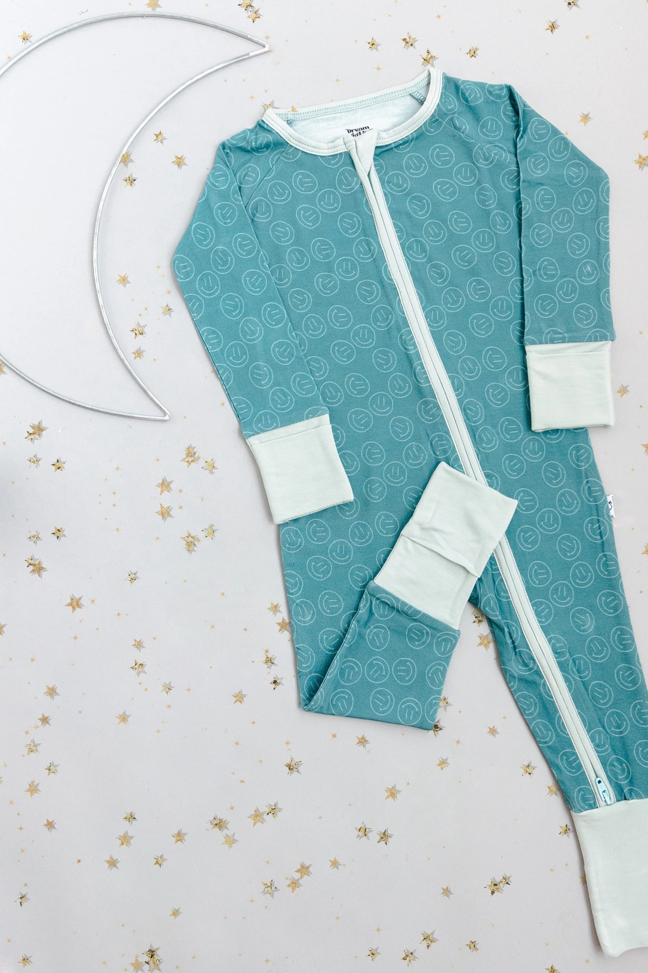 Introducing the Sleepy Smiles Dream Romper: the perfect blend of comfort and cute! Made with bamboo material, this neutral romper with a smiley face design will keep your little one cozy for sleep and play. Say goodbye to restless nights and hello to dreamy smiles!