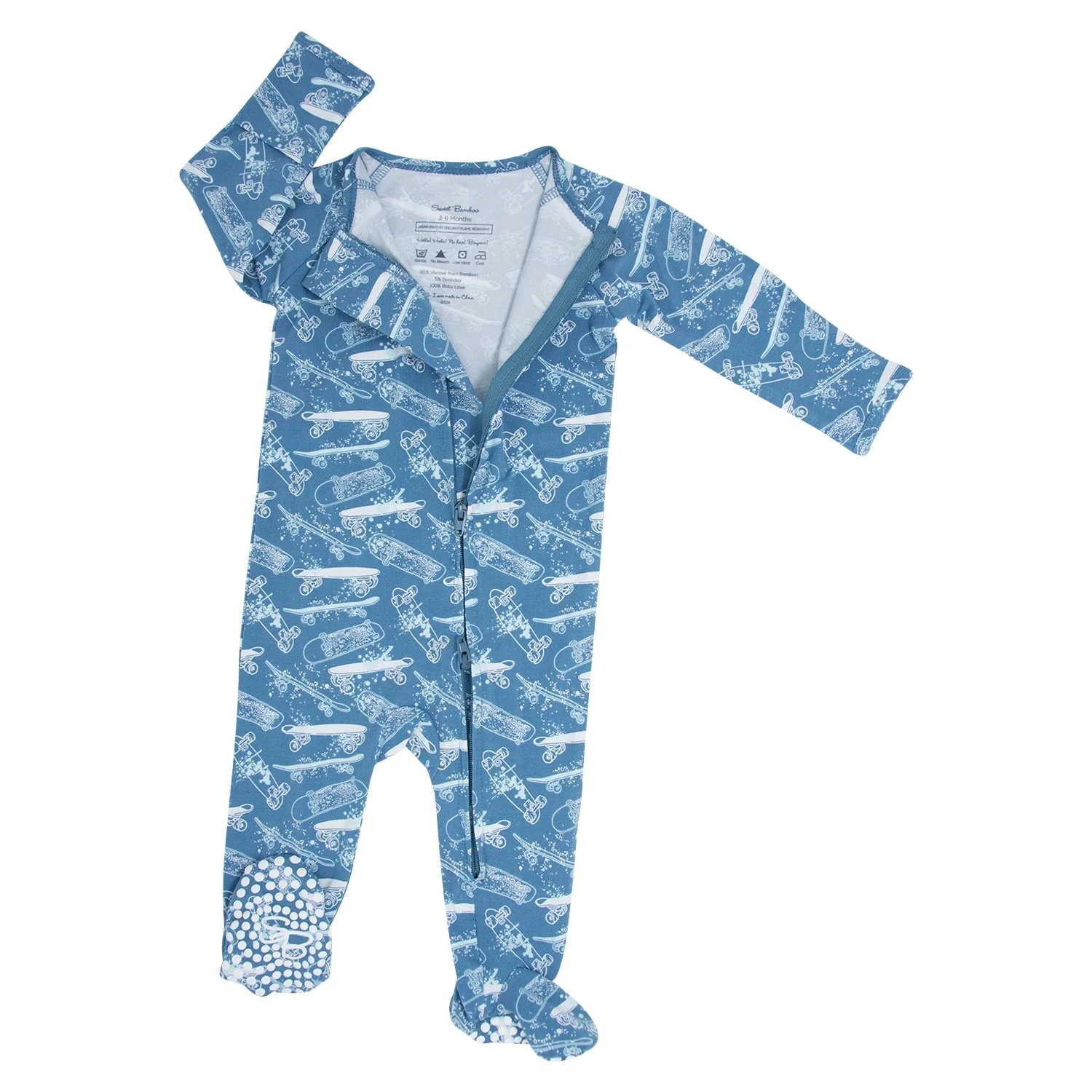 Ask and you shall receive. This yummy footie is equipped with a smooth 2-way zipper, silicone grips on the foot pads and fold-over handcuffs. Plus our silky-soft fabric hugs in all the right places to show off those baby curves.