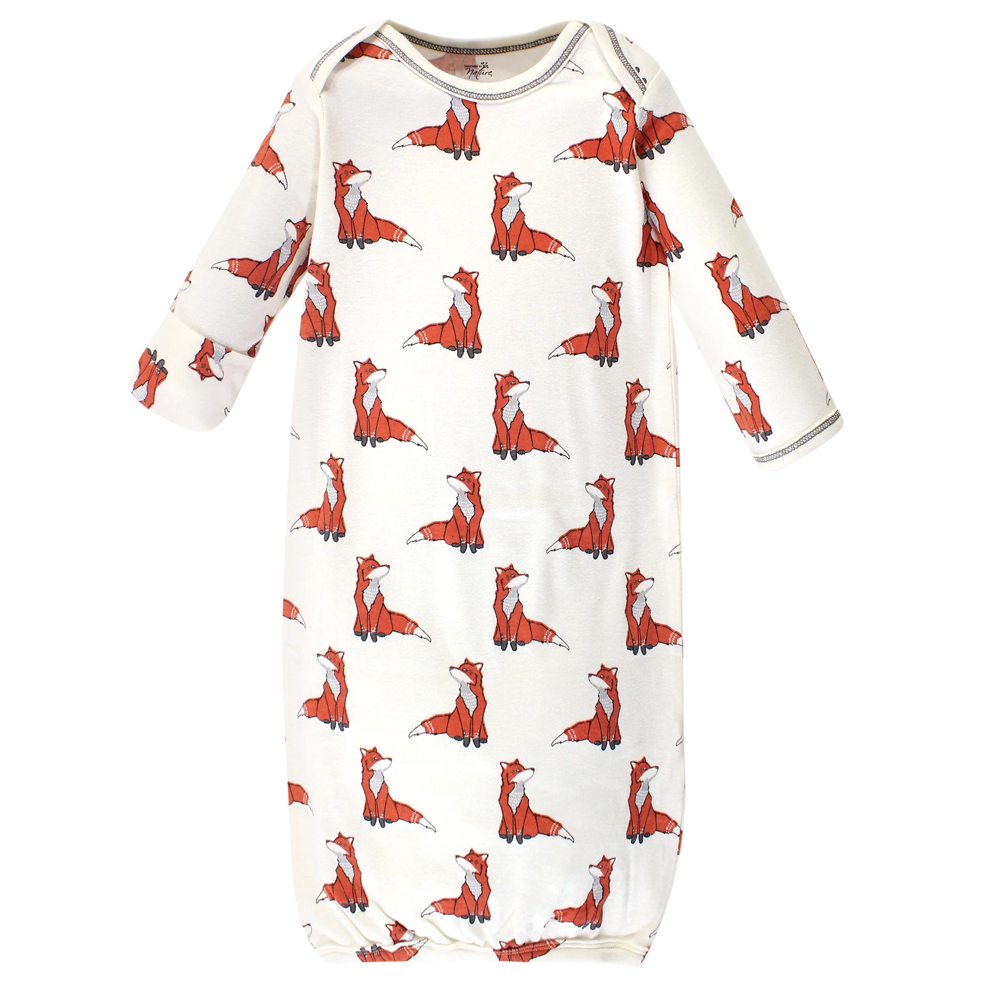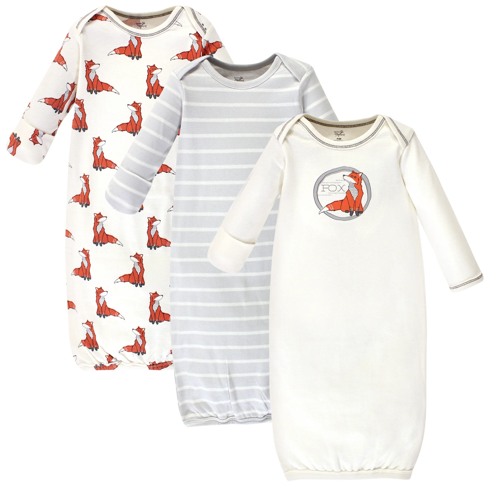 Touched by Nature Baby Boy Organic Cotton Long-Sleeve Gowns 3 Pack, Boho Fox, 0-6 Months