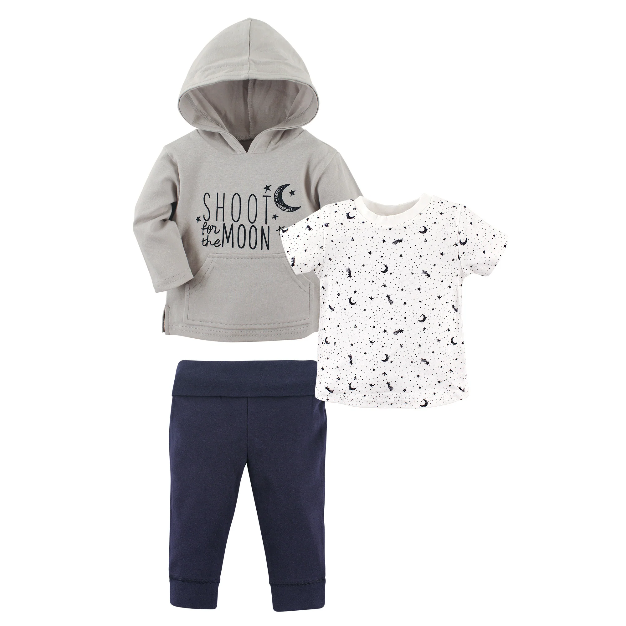 Yoga Sprout Toddler Boy Cotton Hoodie, Tee Top, and Pant, Moon