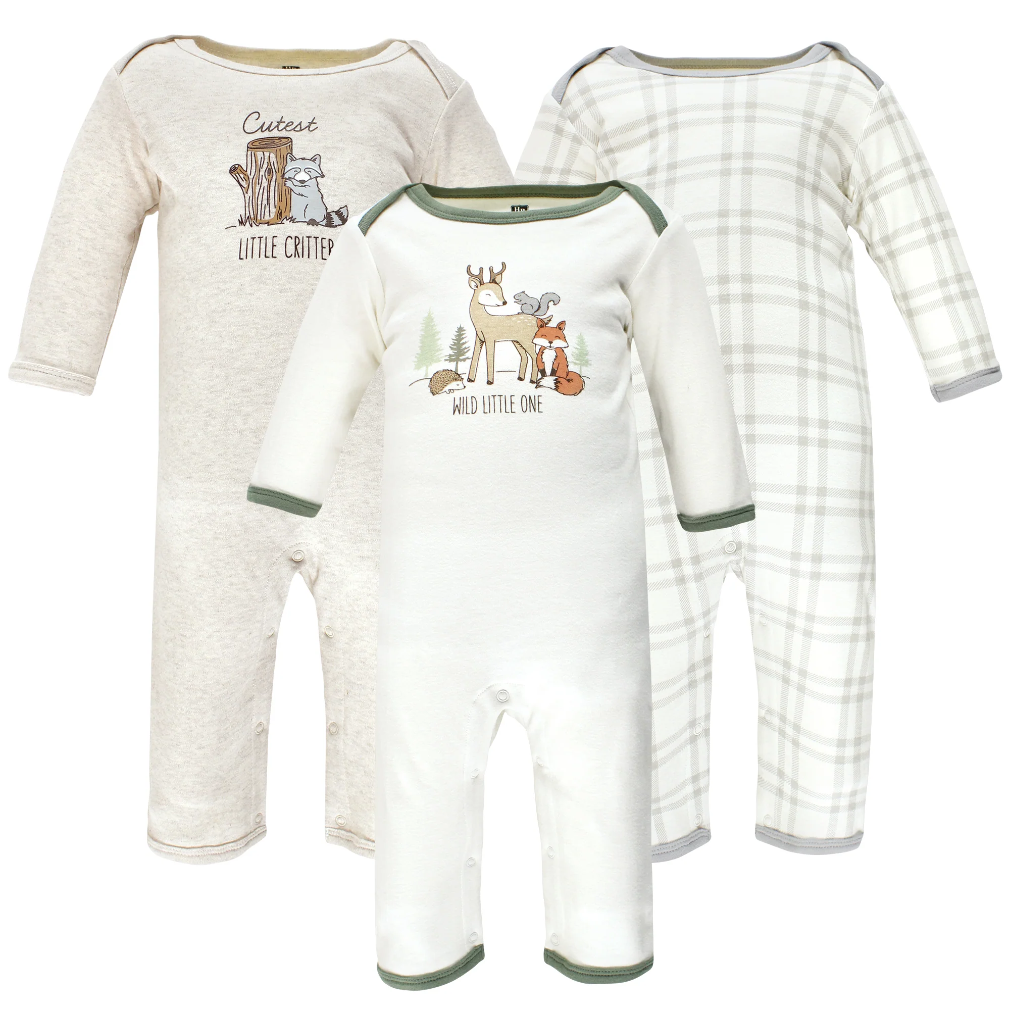 Hudson Baby Infant Boy Cotton Snap Sleep and Play 3 Pack, Forest, Preemie