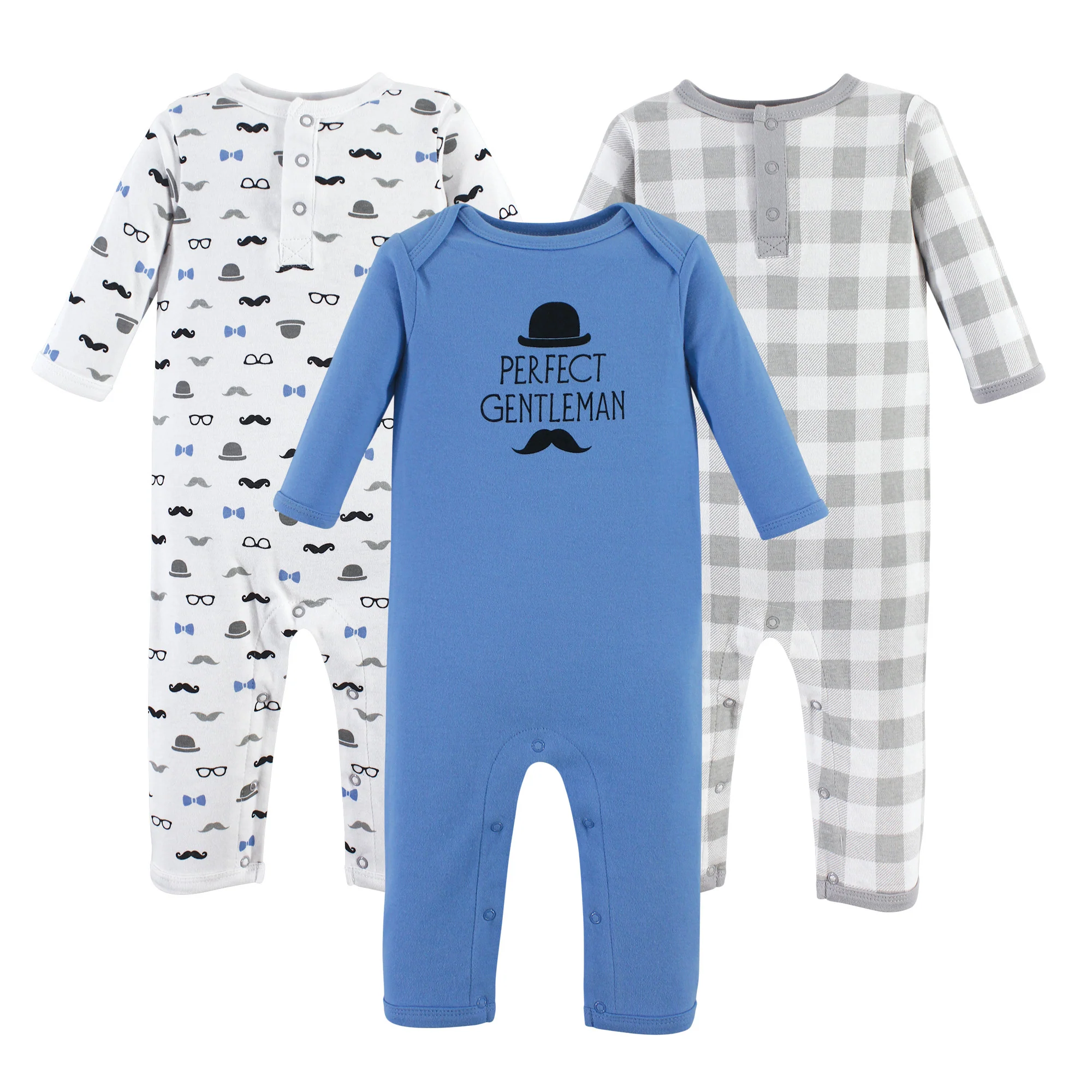 Hudson Baby Infant Boy Cotton Coveralls 3 Pack, Perfect Gentleman