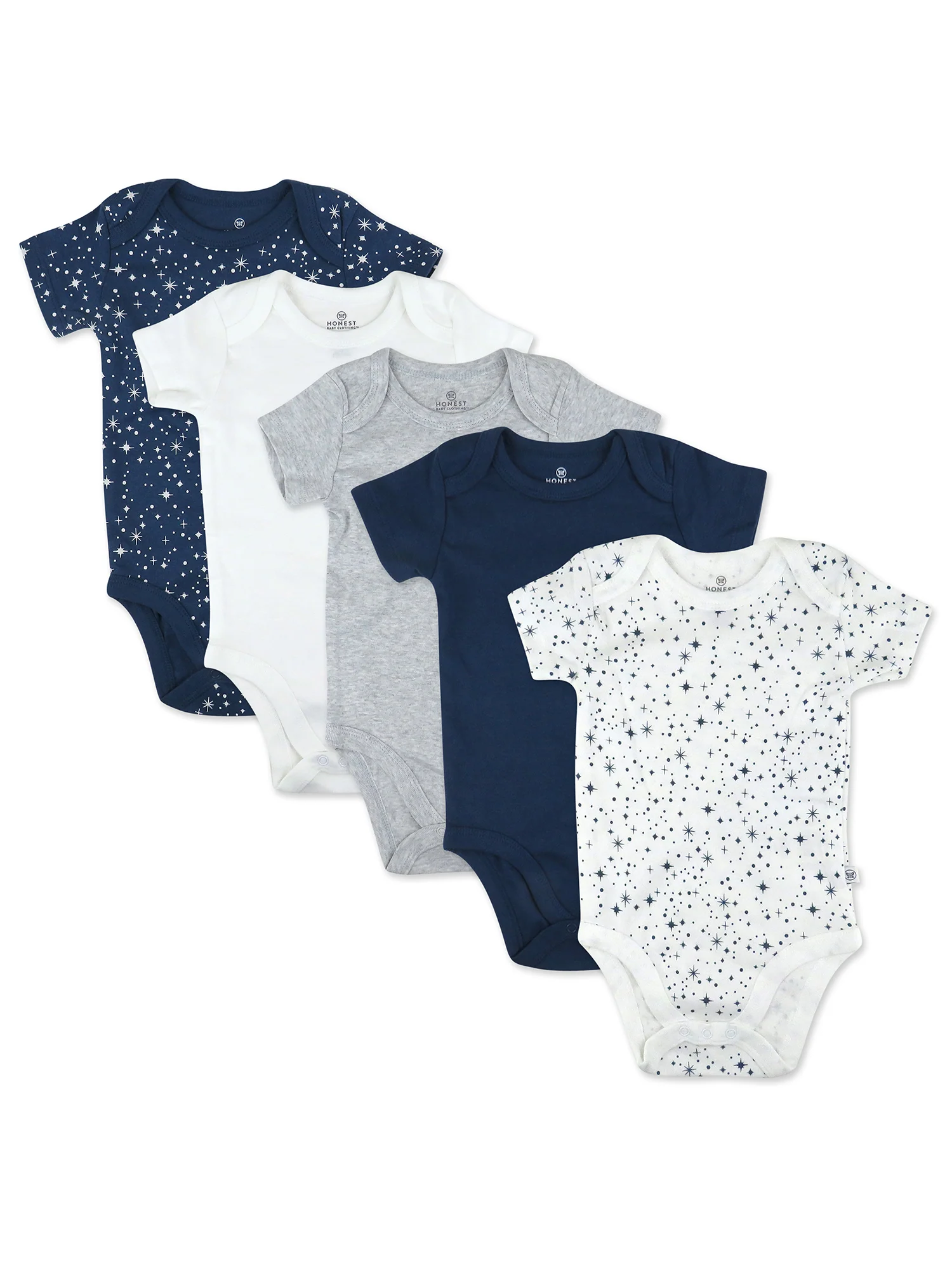 Honest Baby Clothing 5-Pack Organic Cotton Short Sleeve Bodysuits, Twinkle Star Navy