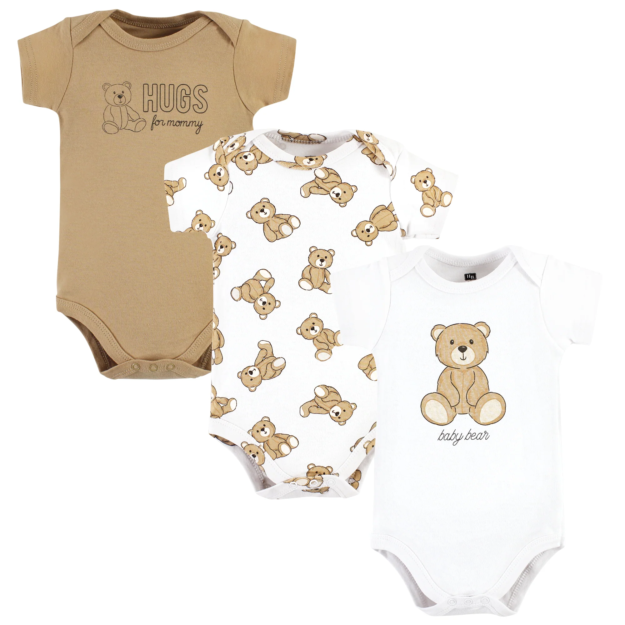 Hudson Baby 3-Pack Cotton Bodysuits, Teddy Bears