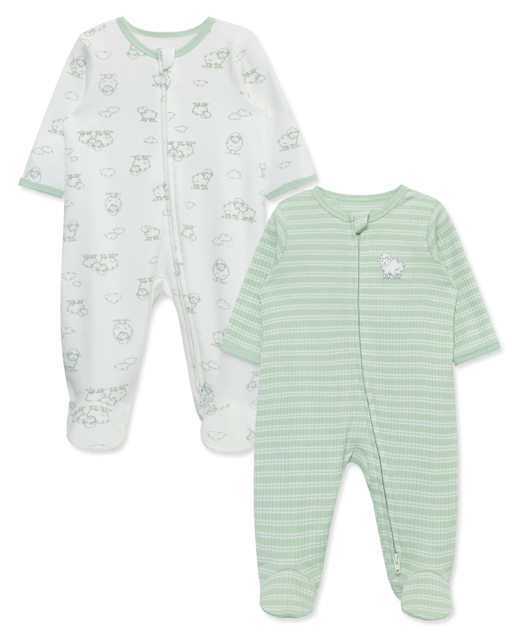 Hudson Baby Infant Boy Cotton Snap Sleep and Play 2 Pack, Cream Forest