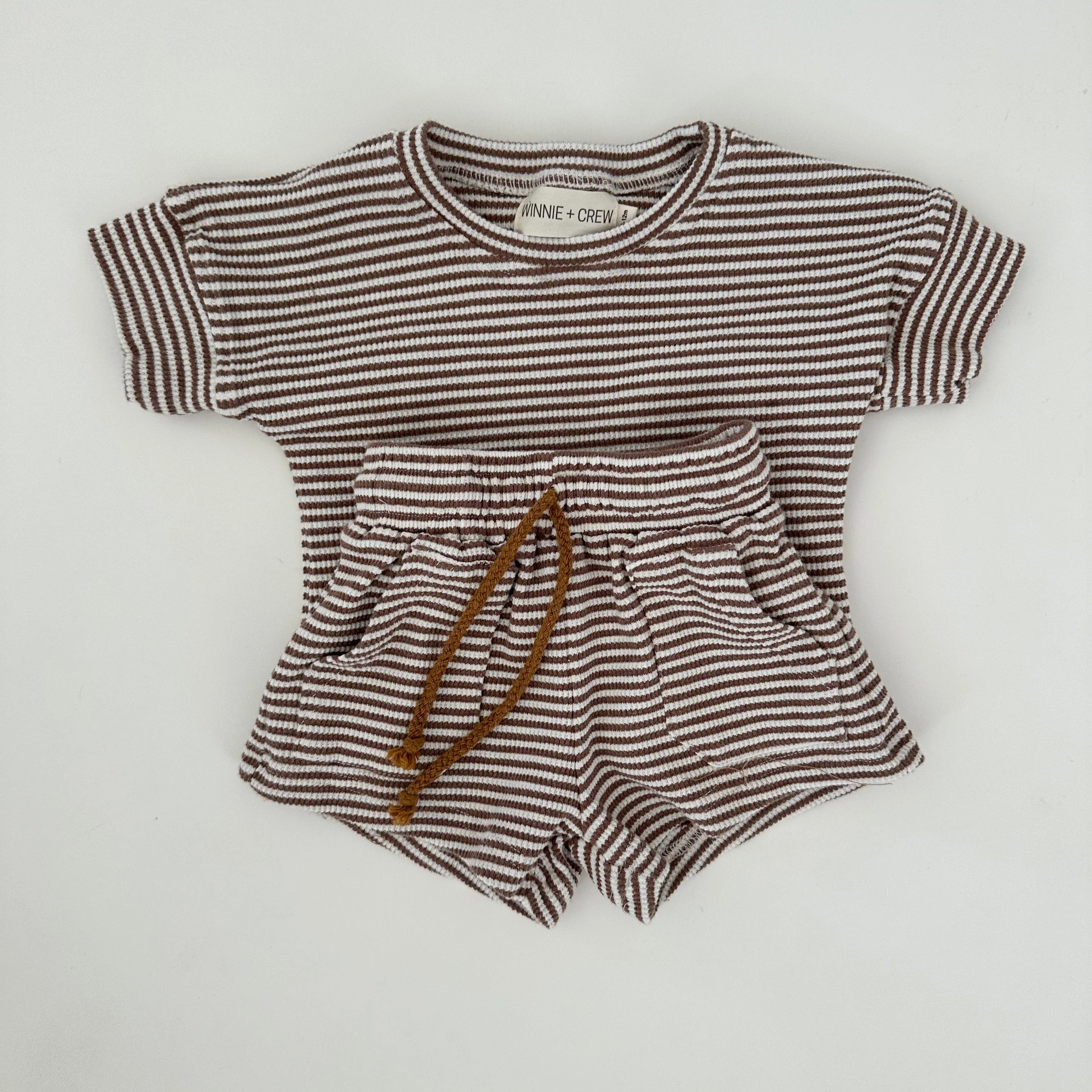 Winnie + Crew Oakley Waffle Set in Brown Stripes