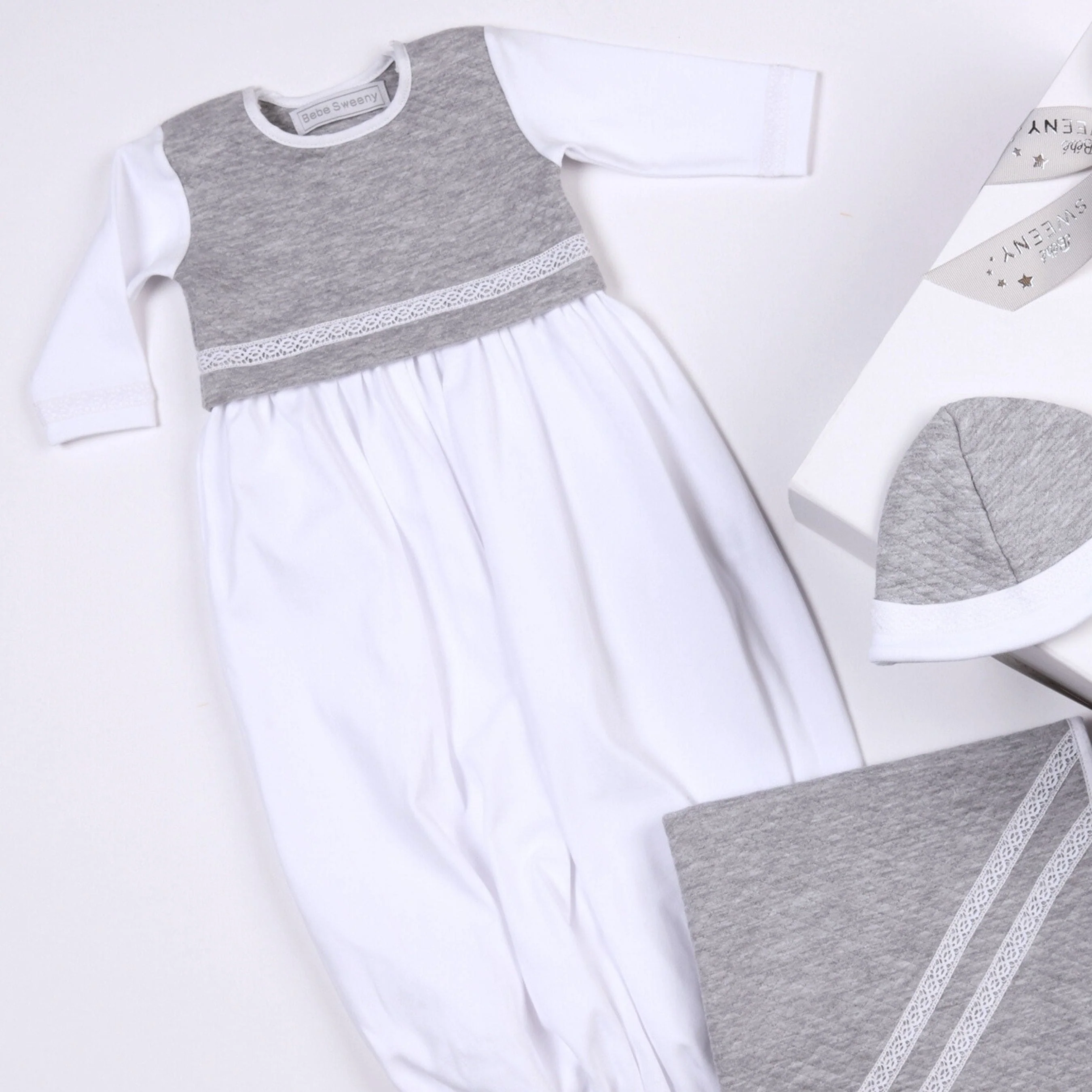 Bebe Sweeny Boys White & Grey Quilted Cotton Gown