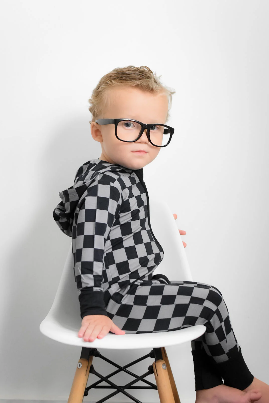 Dream Big Little Co CHARCOAL CHECKERS DREAM ROMPER HOODIE