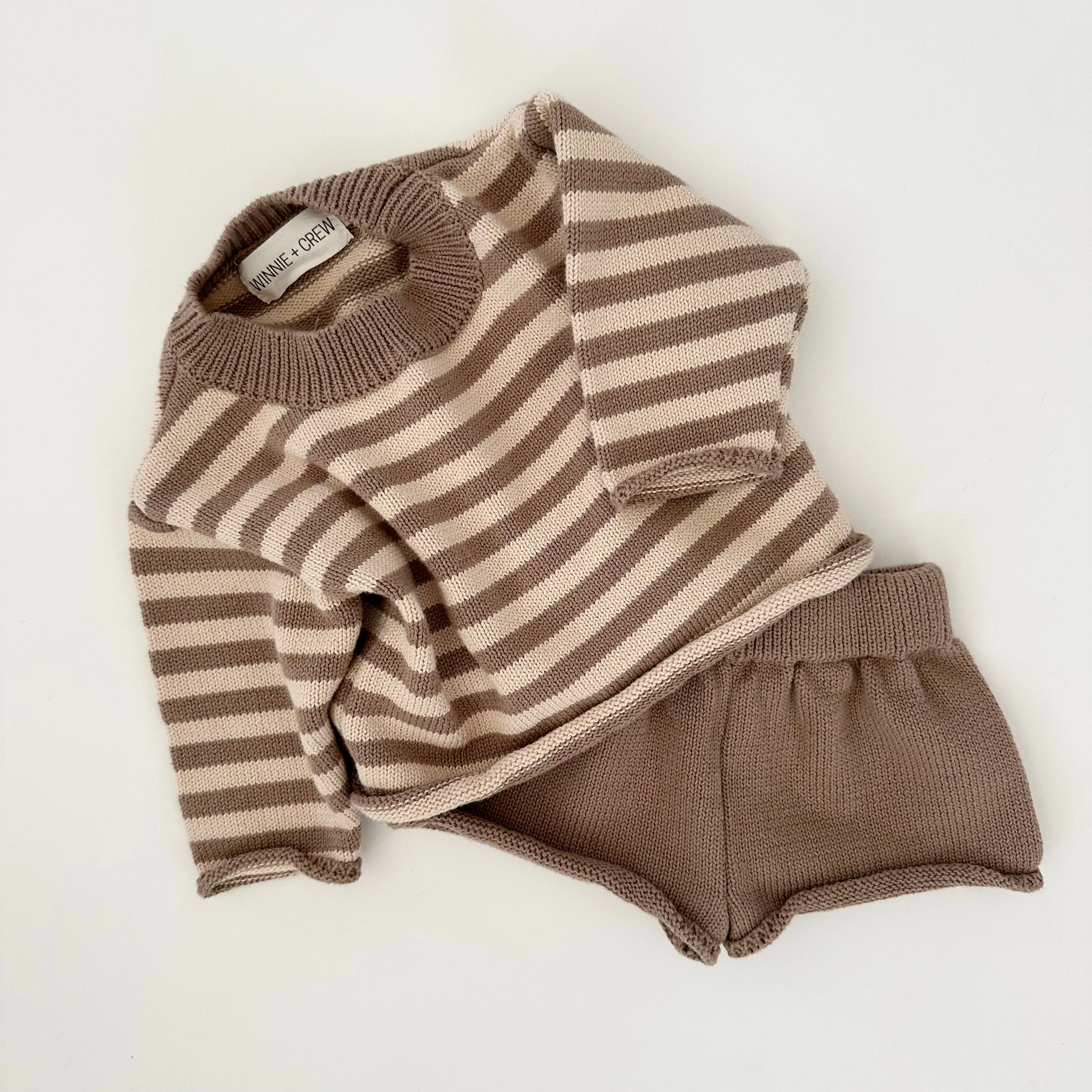 Winnie + Crew Bowie Knit Set in Brown Stripes