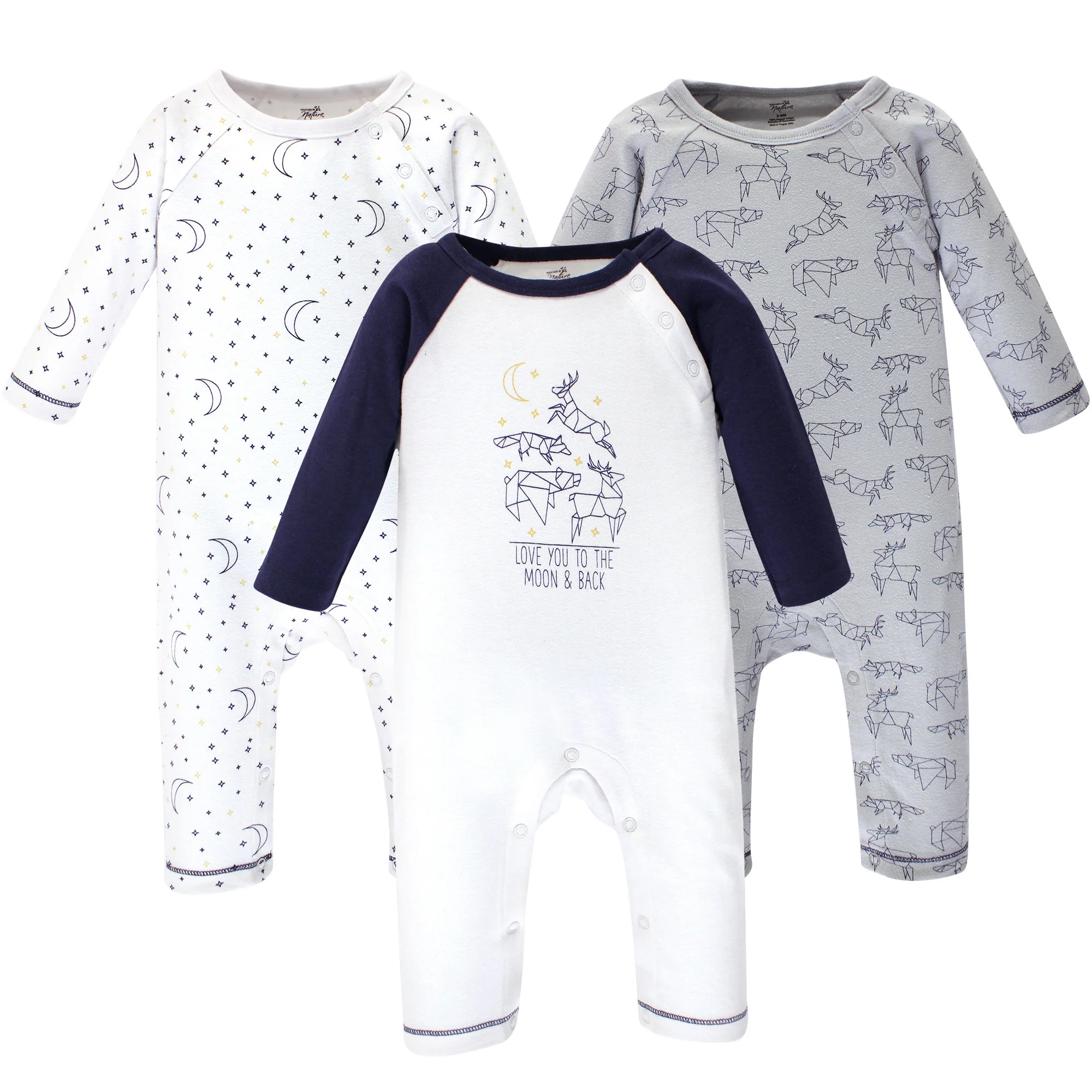 Touched by Nature Baby Boy Organic Cotton Coveralls 3 Pack, Constellation