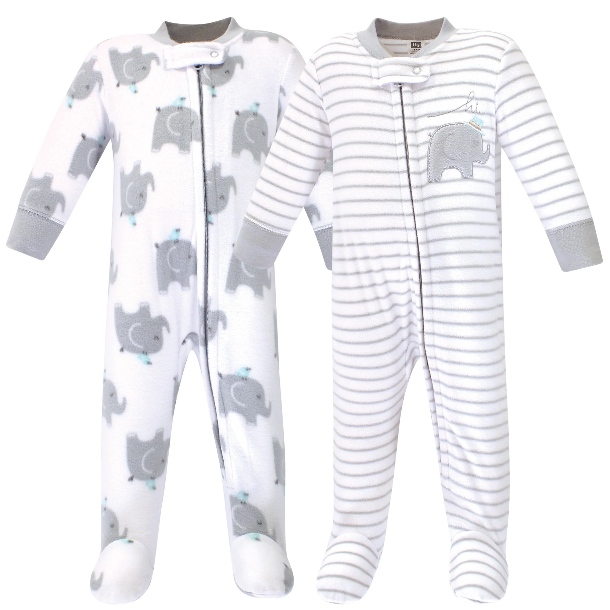 Hudson Baby Fleece Zipper Sleep and Play 2-Pack, Elephants