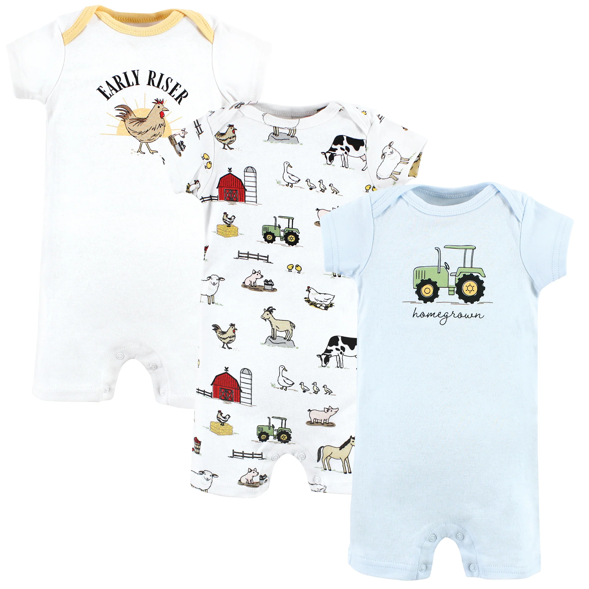 Hudson Baby Infant Boy Cotton Rompers, Tractor