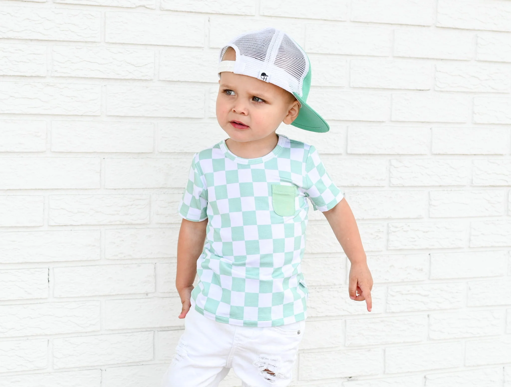 Dream Big Little Co Mint Checkers Dream Pocket Tee