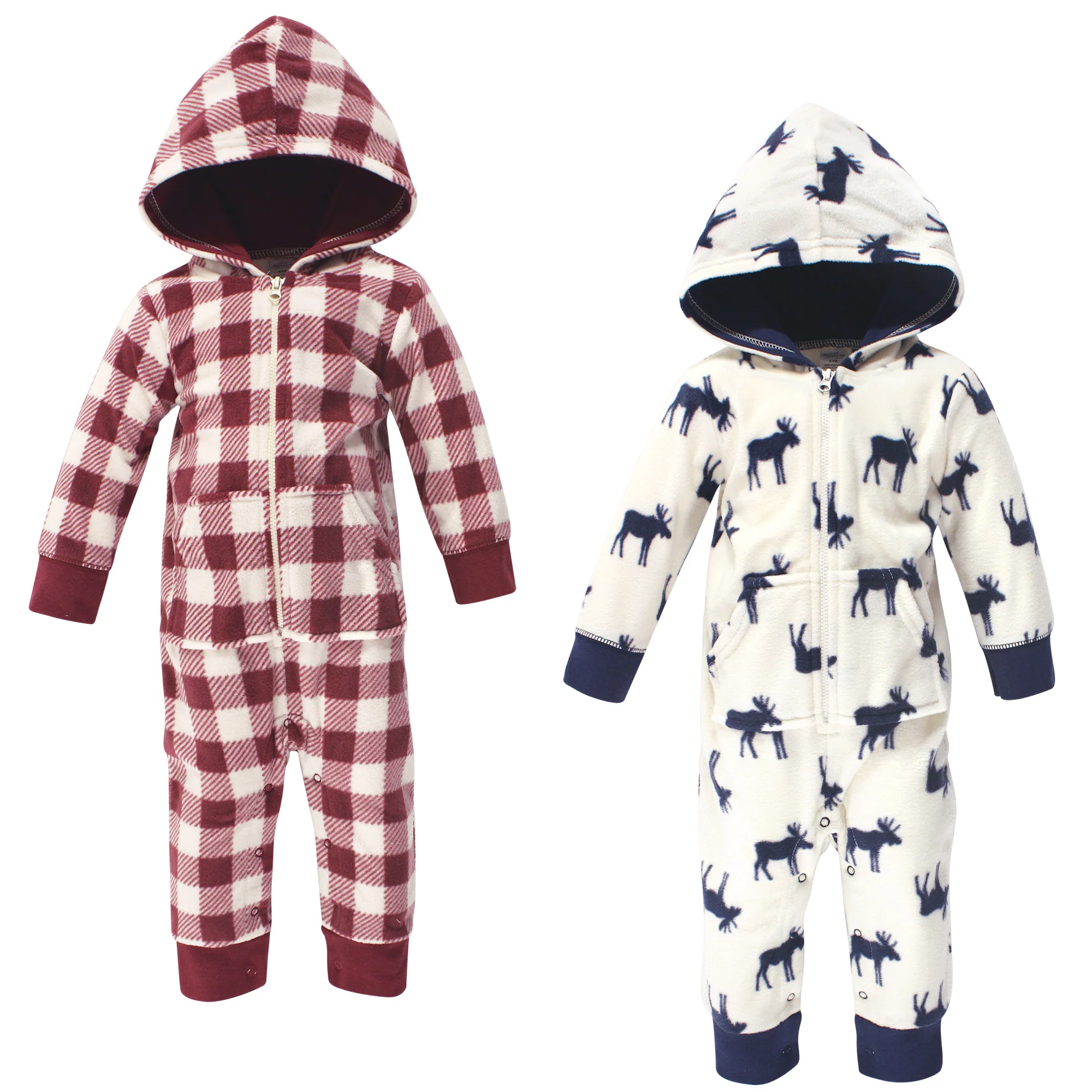 Little Treasure Baby Boy Fleece Jumpsuits and Coveralls 2 Pack, Moose