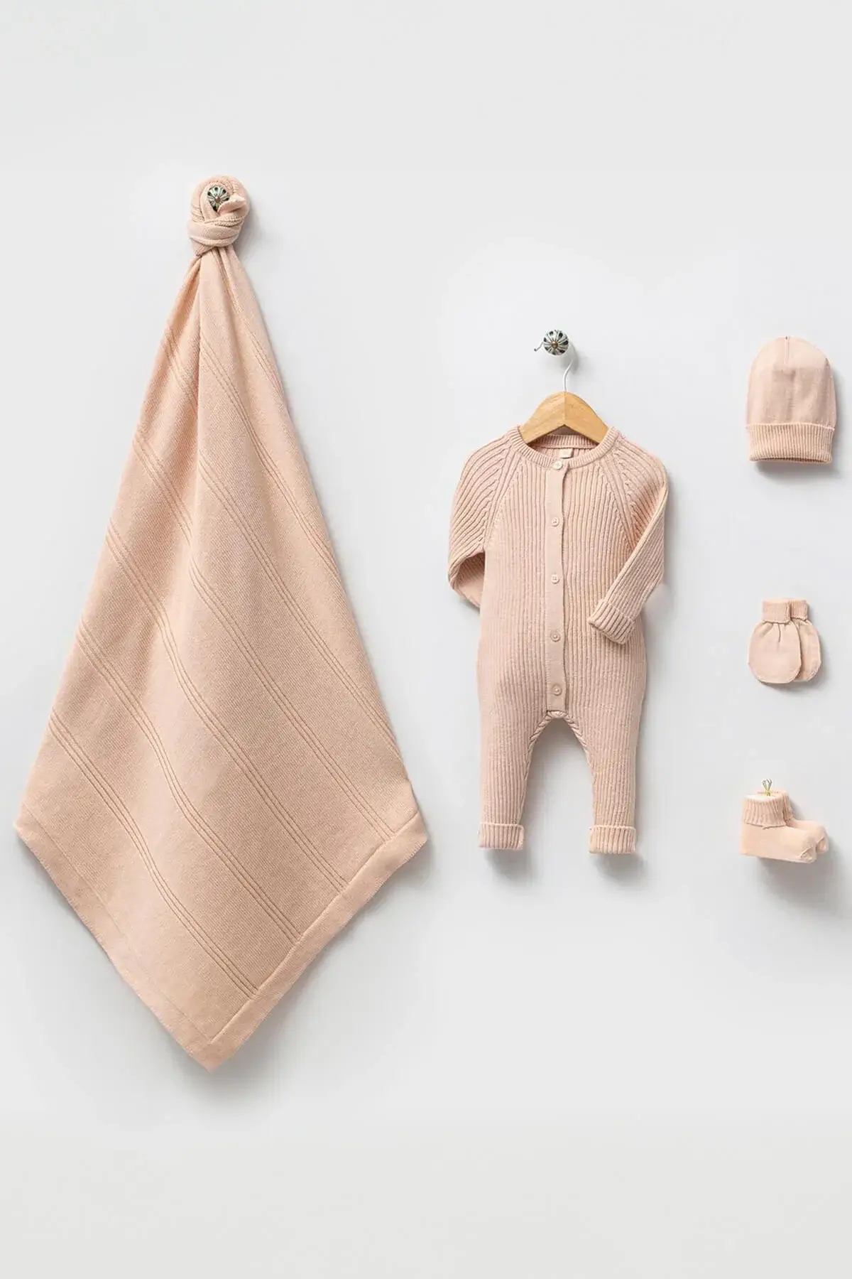 THA Dressing Elliot Beige Newborn Knitwear Coming Home Set ( 5 Pcs)