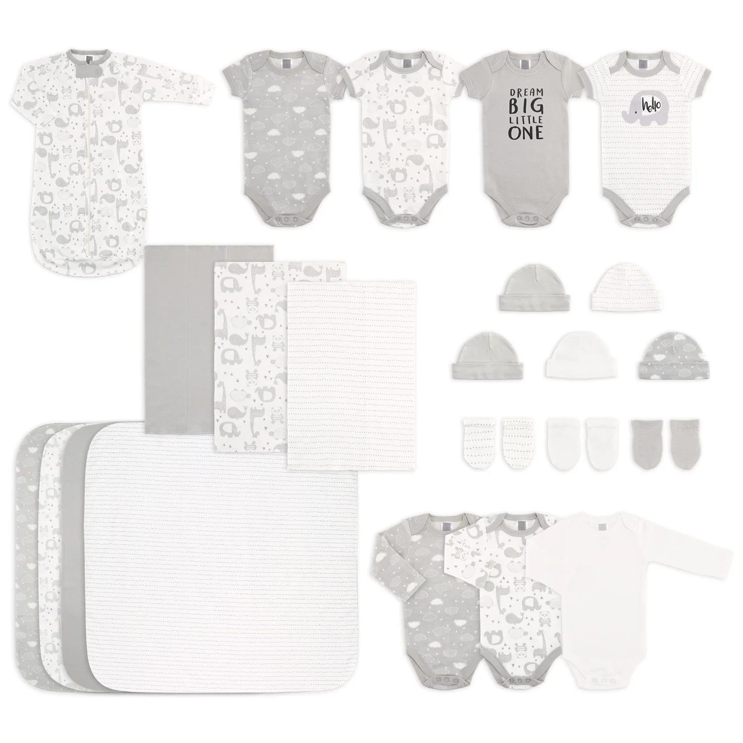 The Peanutshell 23 Piece Layette Set in Grey Animals