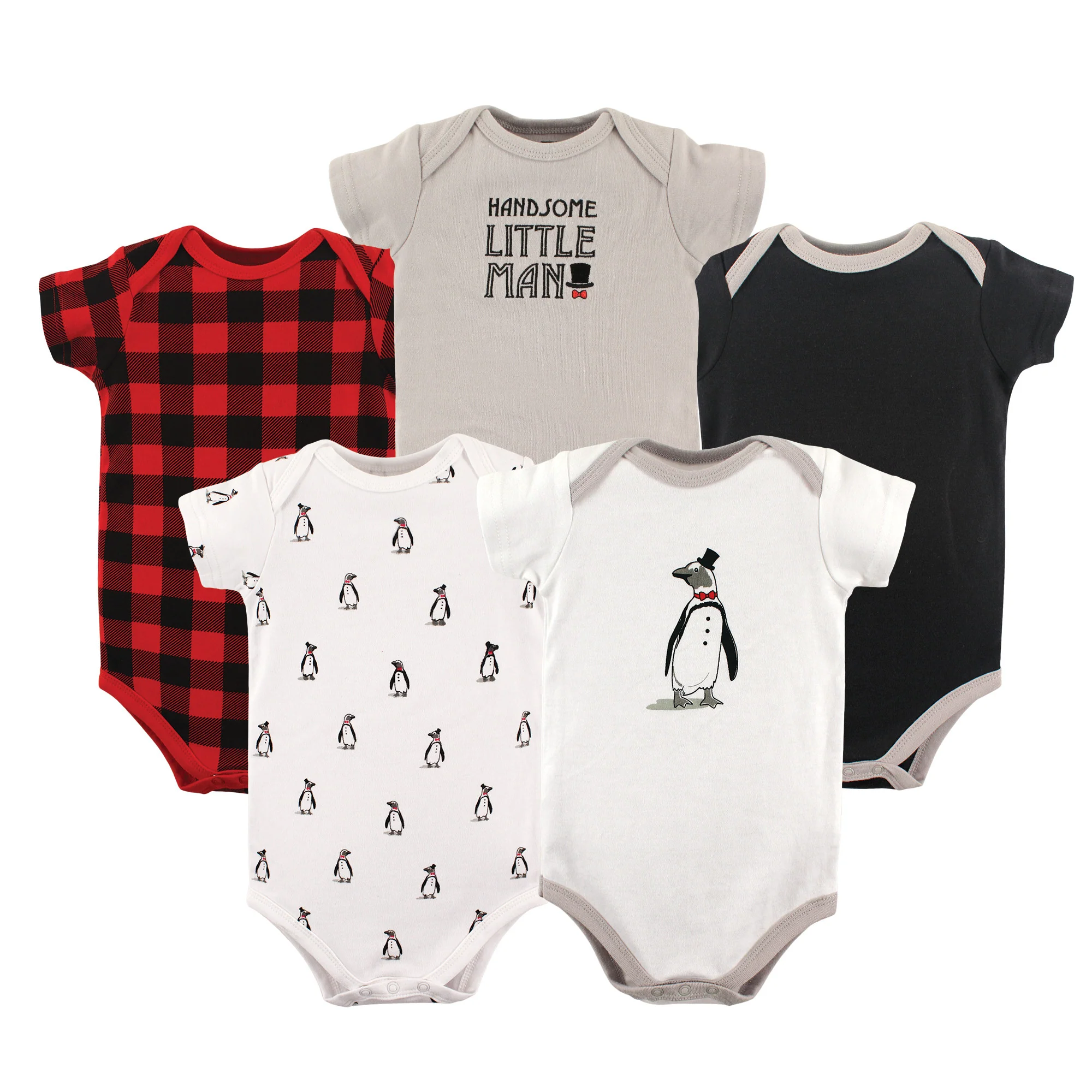 Hudson Baby Infant Boy Cotton Bodysuits 5 Pack, Penguin