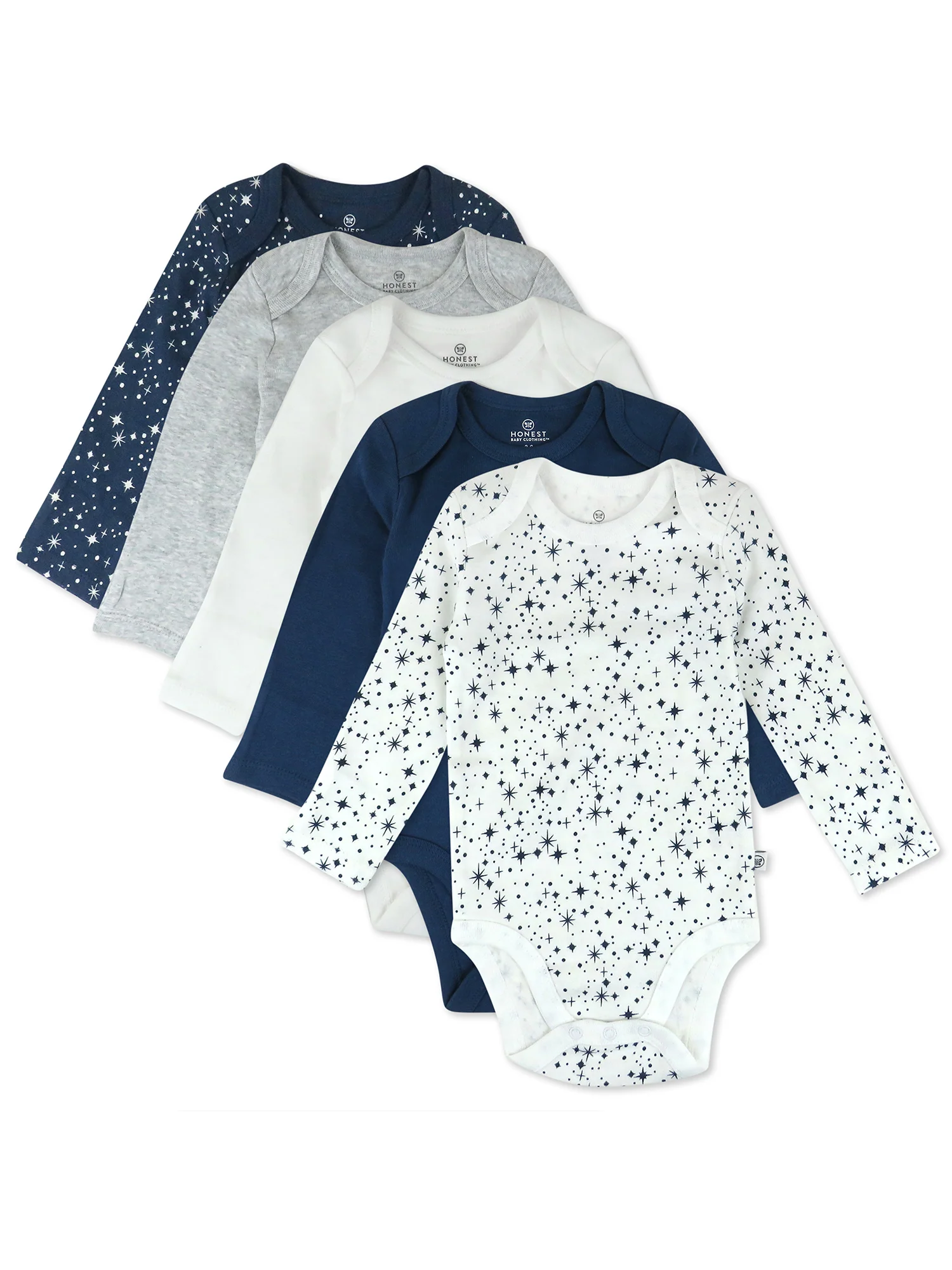 Honest Baby Clothing 5 Pack Organic Cotton Long Sleeve Bodysuit, Twinkle Star Navy
