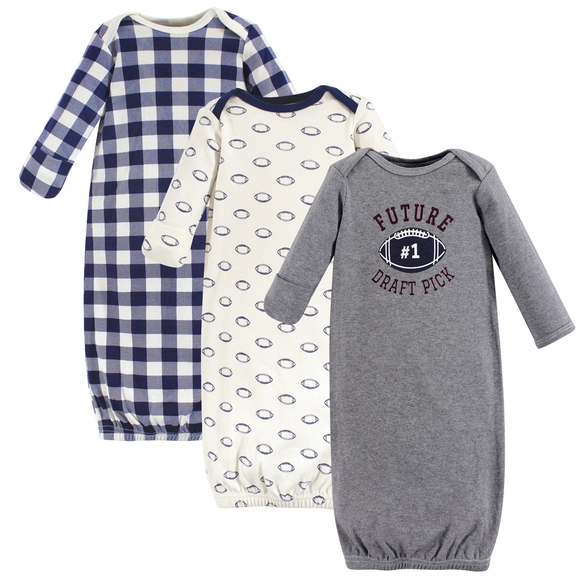 Hudson Baby Infant Boy Cotton Long-Sleeve Gowns 3 Pack, Football, 0-6 Months