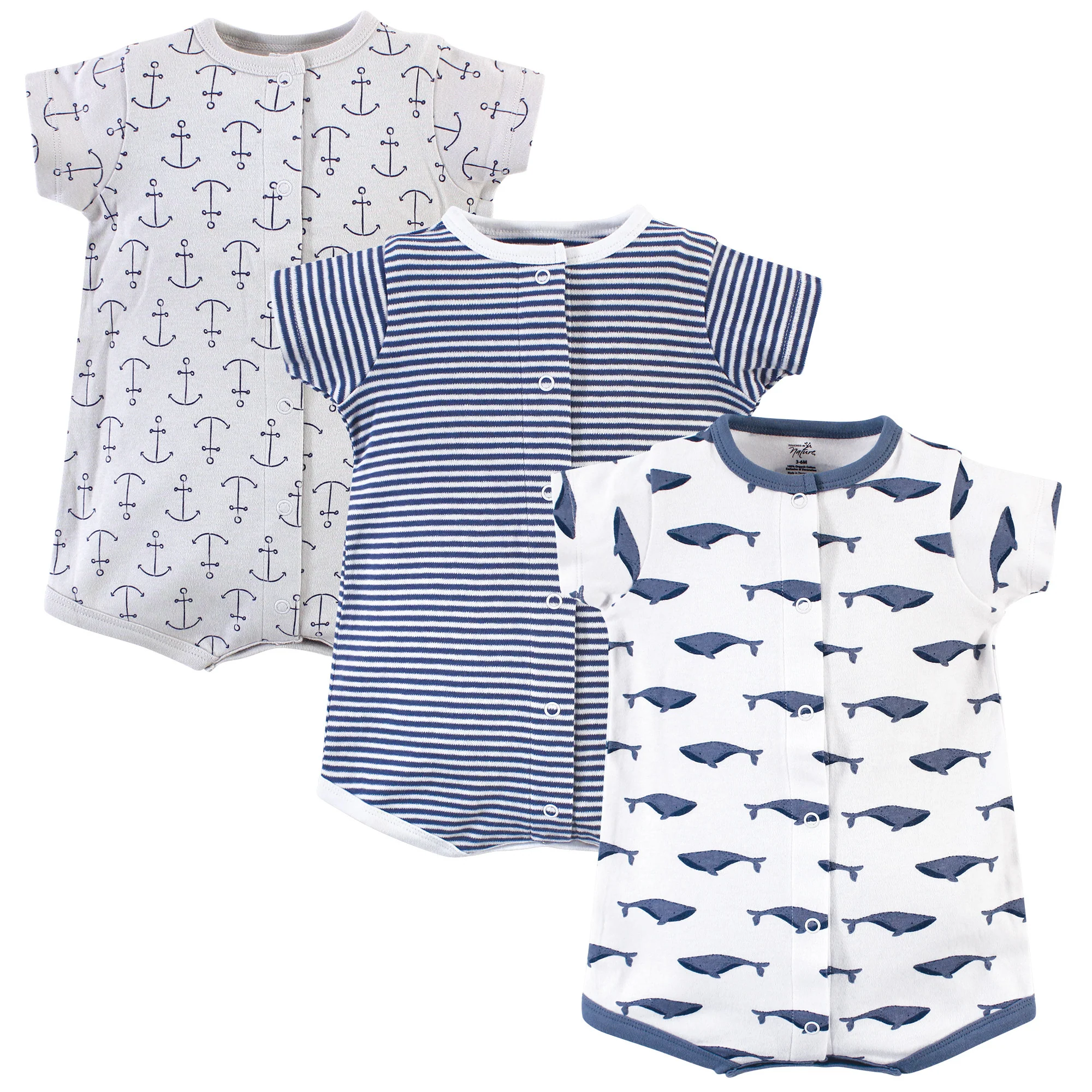 Touched by Nature Baby Boy Organic Cotton Rompers 3 Pack, Blue Whale