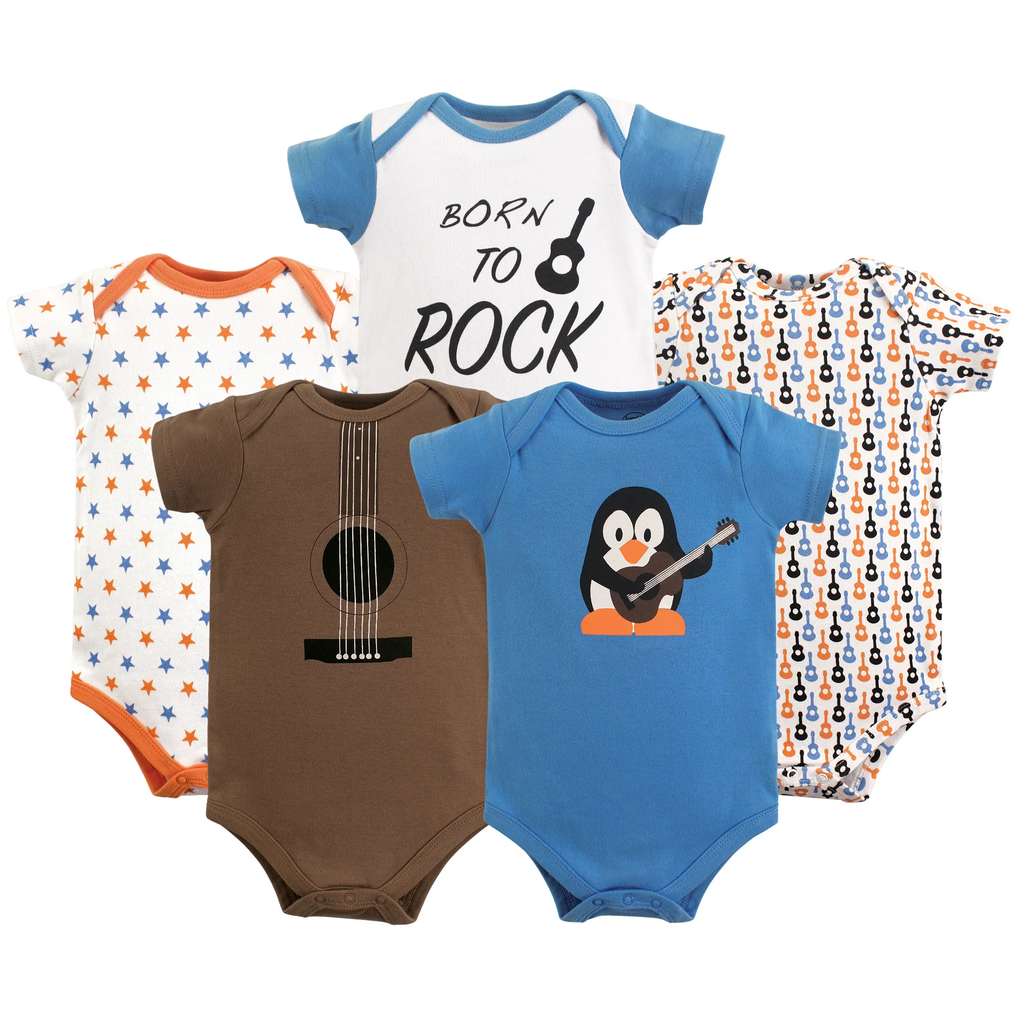 Luvable Friends Baby Boy Cotton Bodysuits 5-Pack, Rock