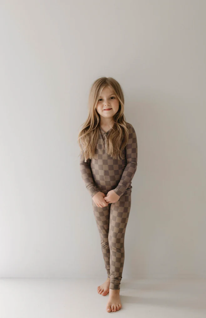 forever french baby Bamboo Two Piece Pajama | Faded Brown Checkerboard