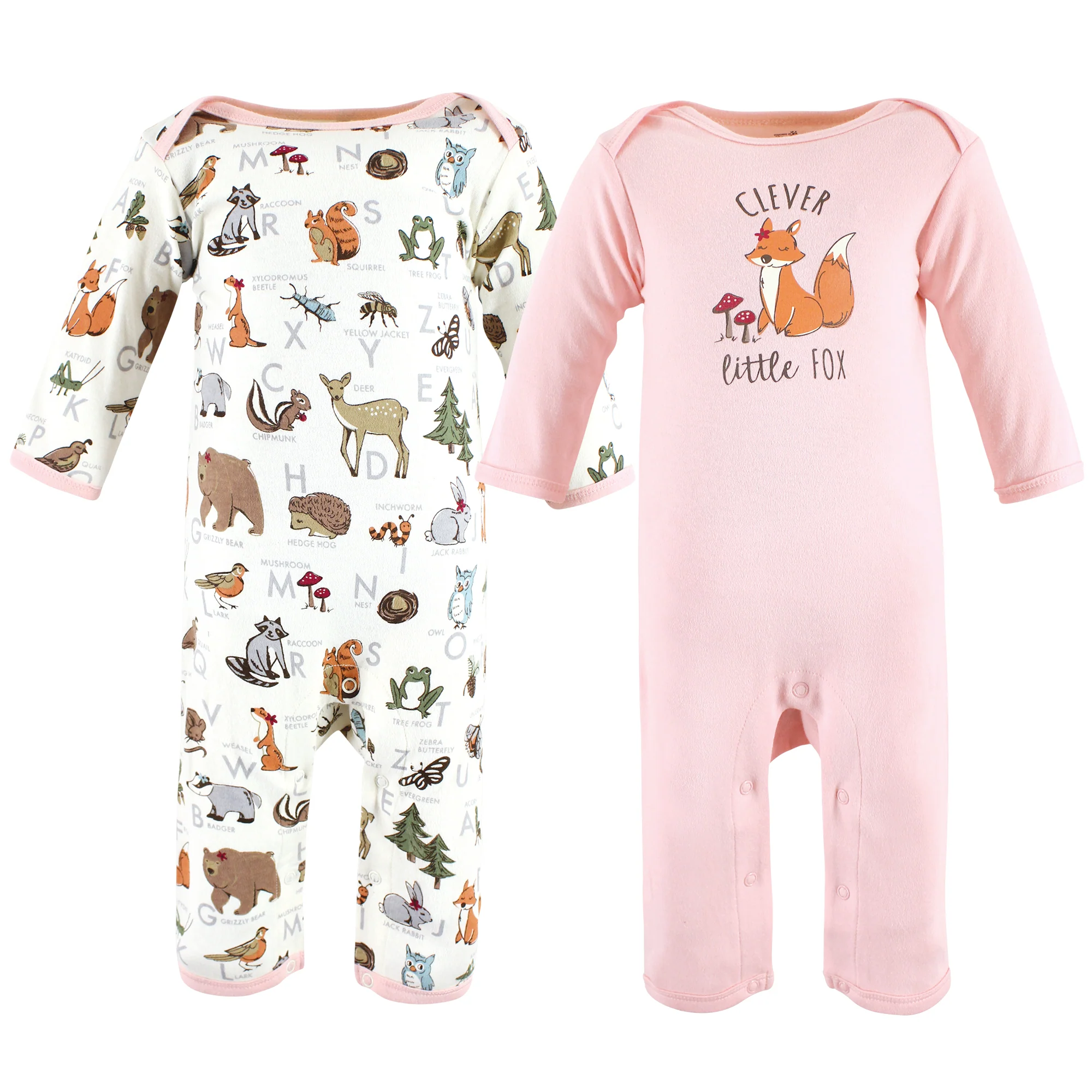 Touched by Nature Infant Girl Organic Cotton Coveralls, Woodland Alphabet