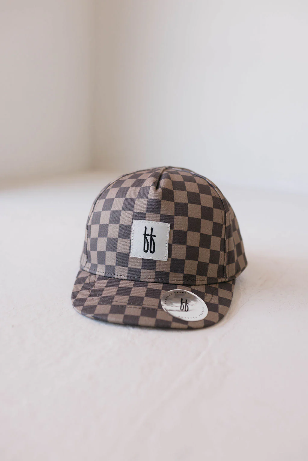 forever french baby Children's Trucker Hat | Faded Brown Checker