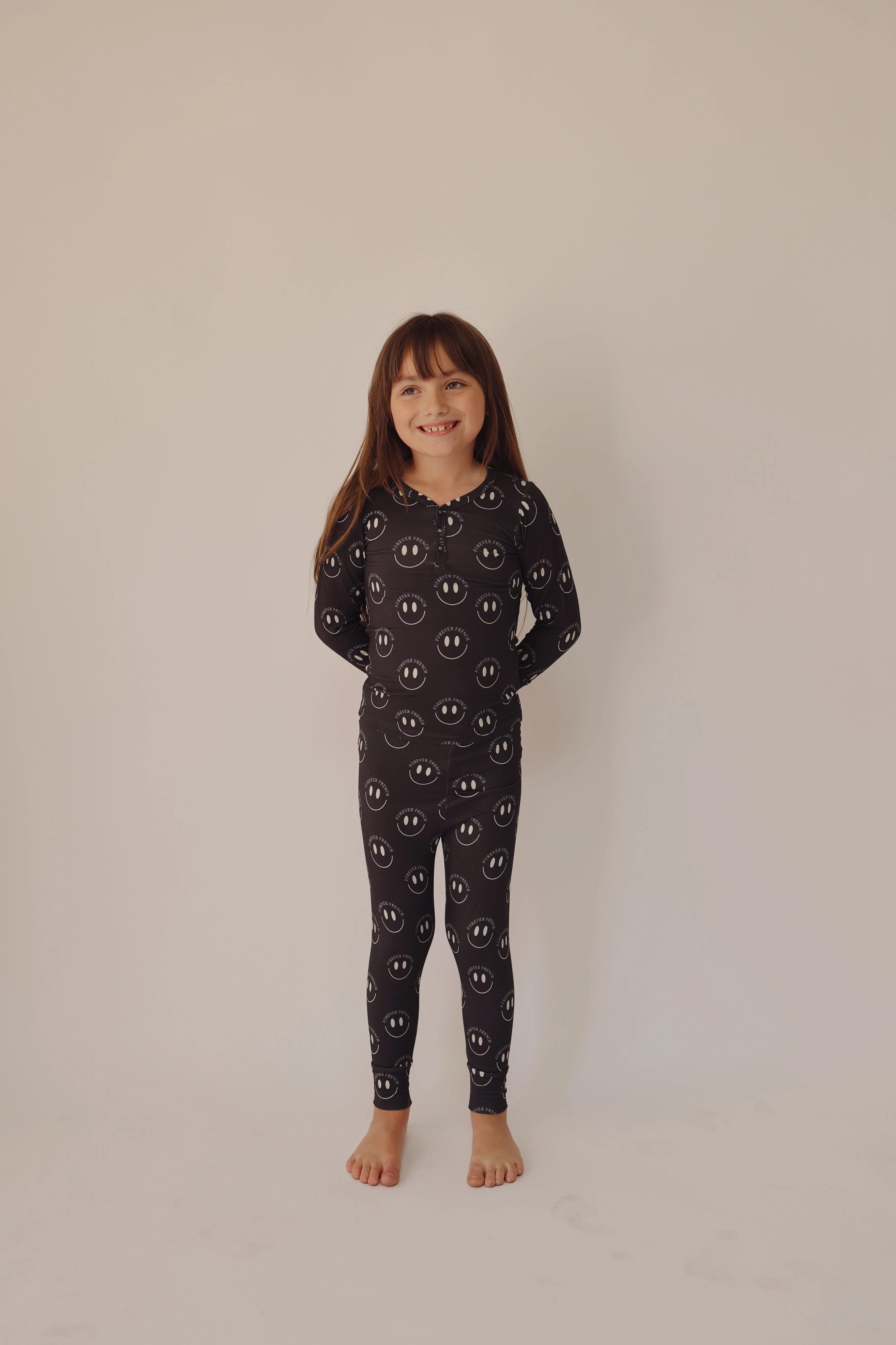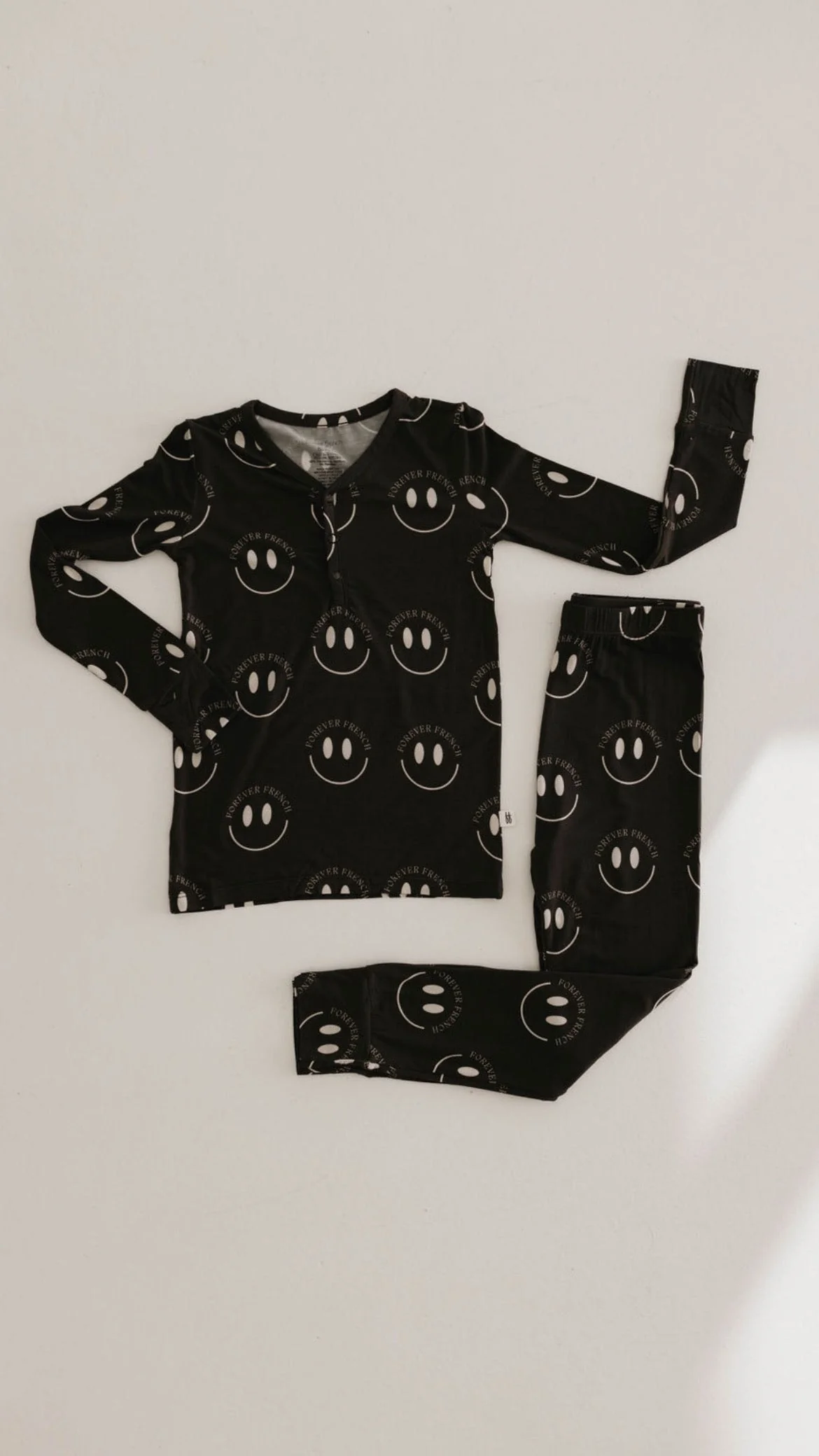 forever french baby Bamboo Two Piece Pajama | Charcoal & White FF Smile