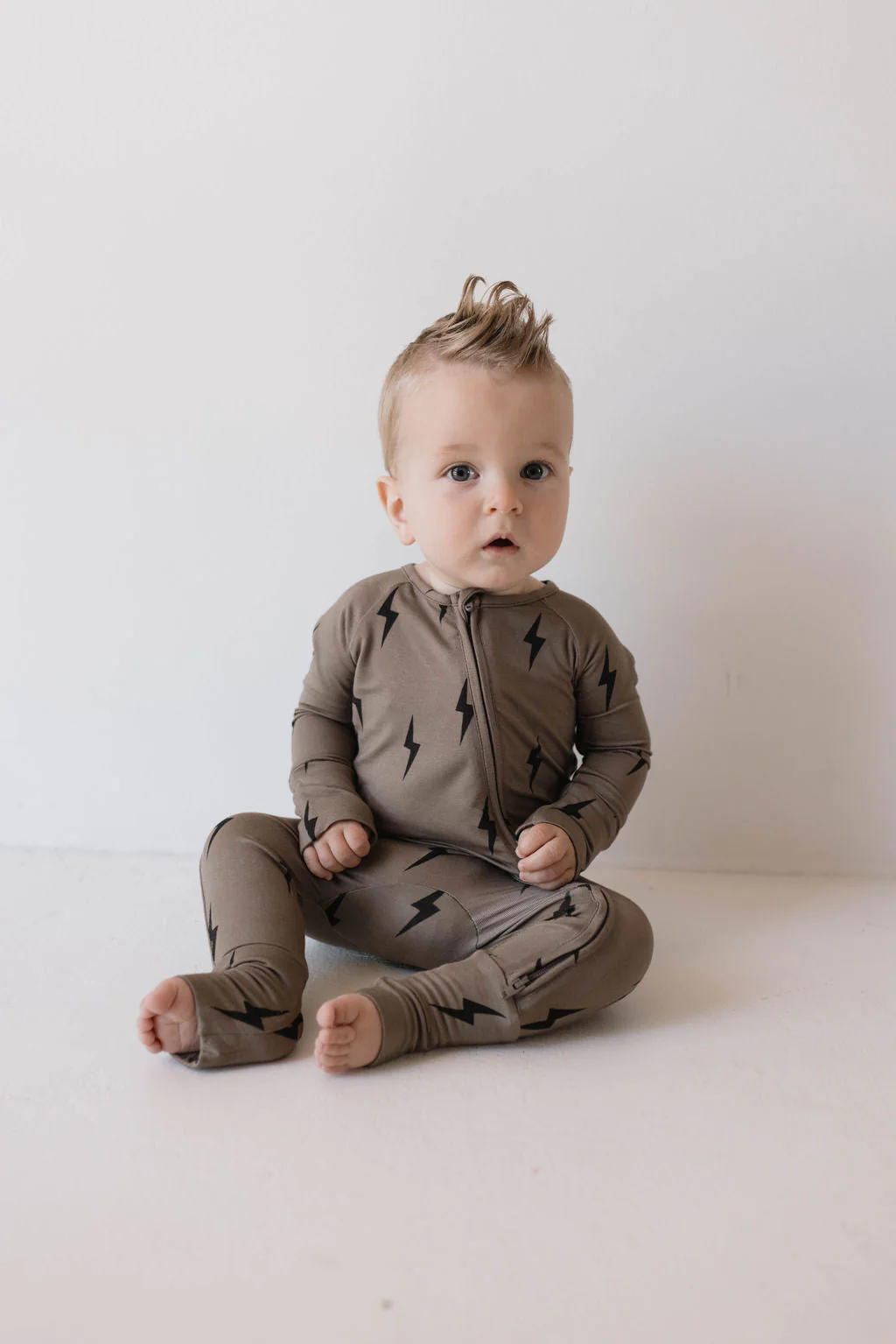 forever french baby Bamboo Zip Pajamas | Brown & Black Lightning Bolt