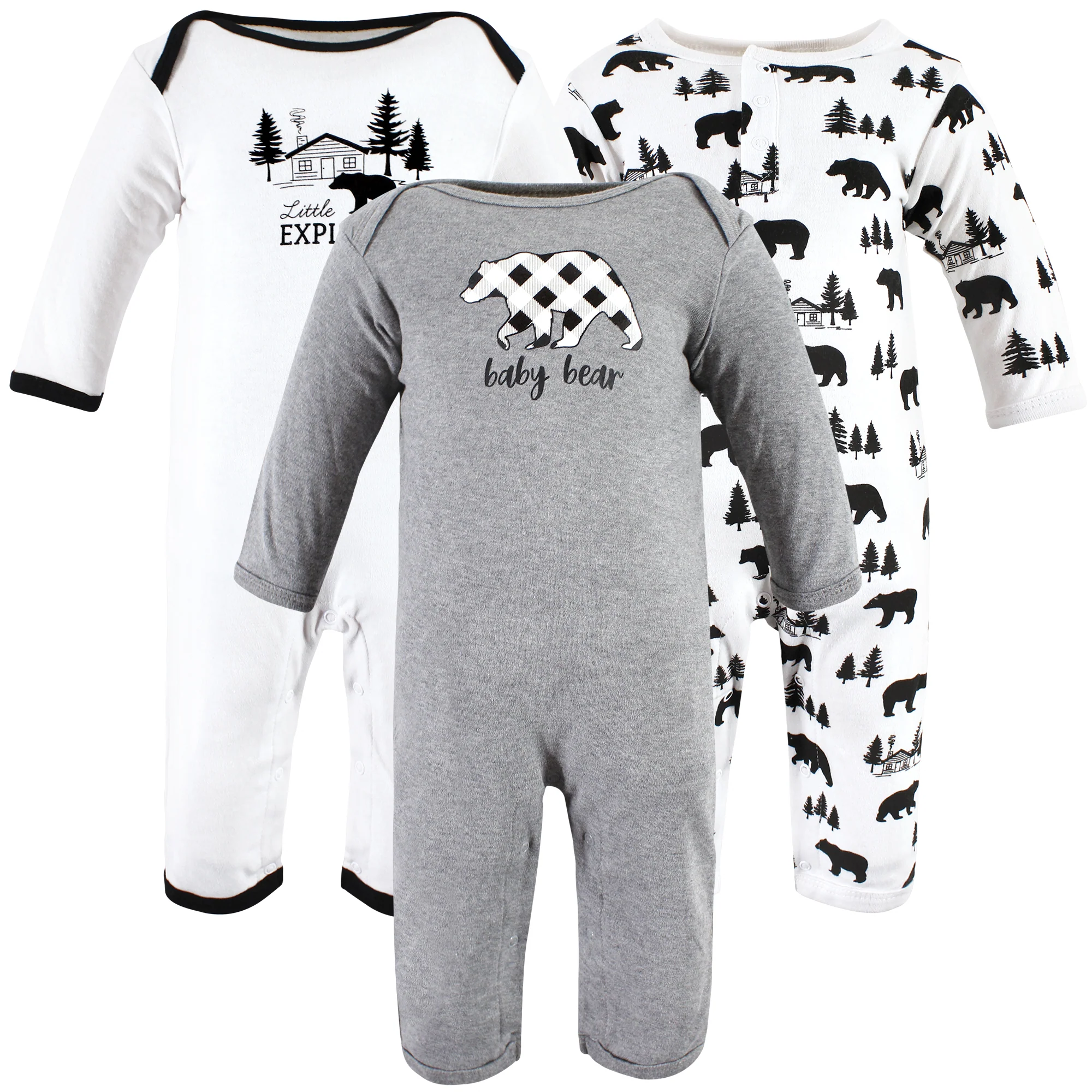 Hudson Baby 3-Pack Cotton Coveralls, Baby Bear Gray Black