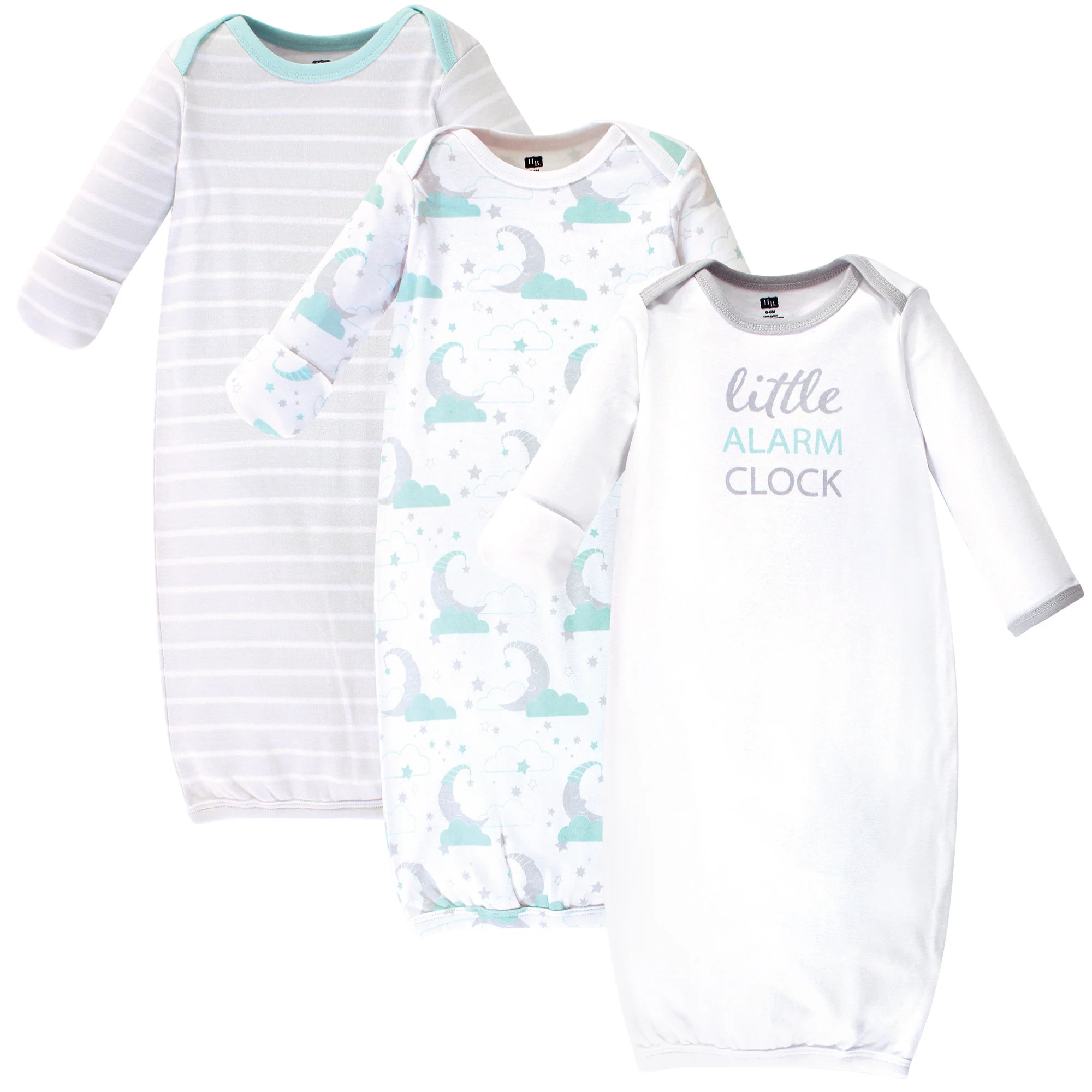 Hudson Baby Infant Boy Cotton Long-Sleeve Gowns 3 Pack, Alarm Clock