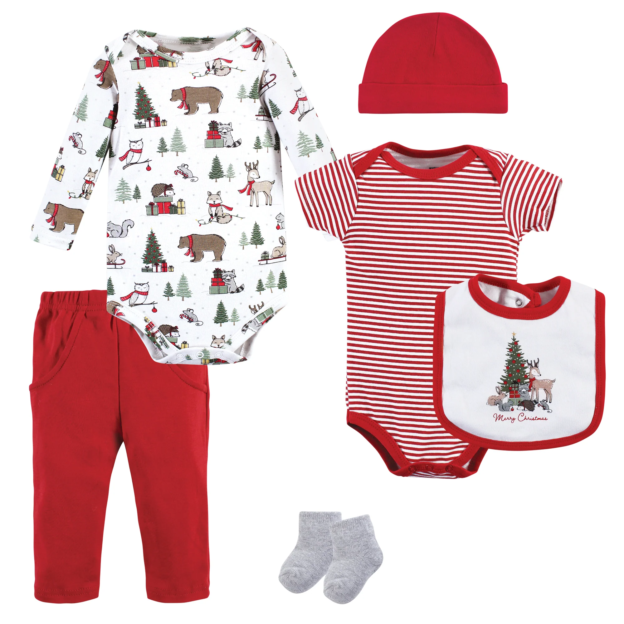 Hudson Baby Cotton 6-Piece Layette Set, Christmas Forest