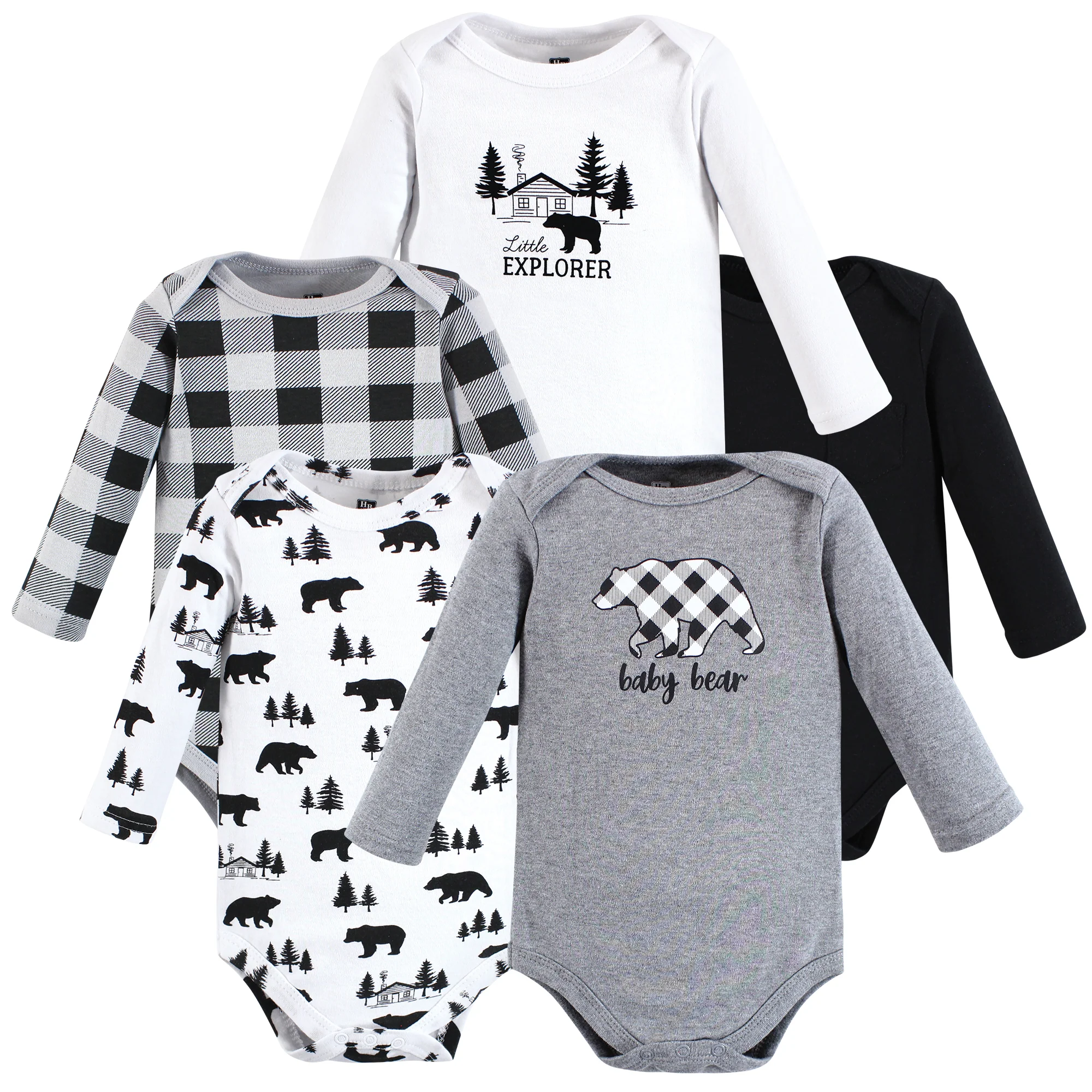 Hudson Baby Infant Boy Cotton Long-Sleeve Bodysuits, Baby Bear Gray Black 5-Pack