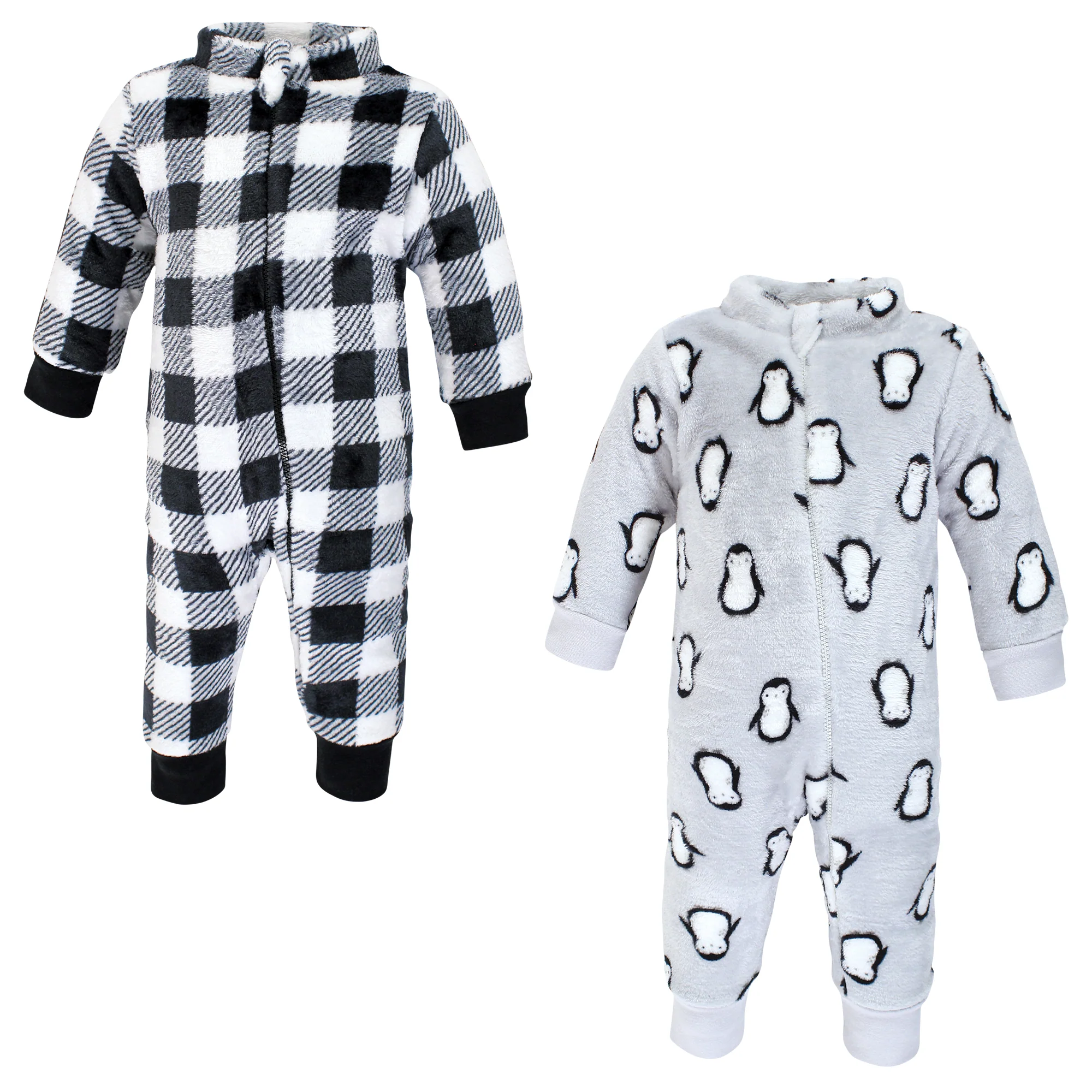 Hudson Baby Infant Boy Plush Jumpsuits, Gray Penguin
