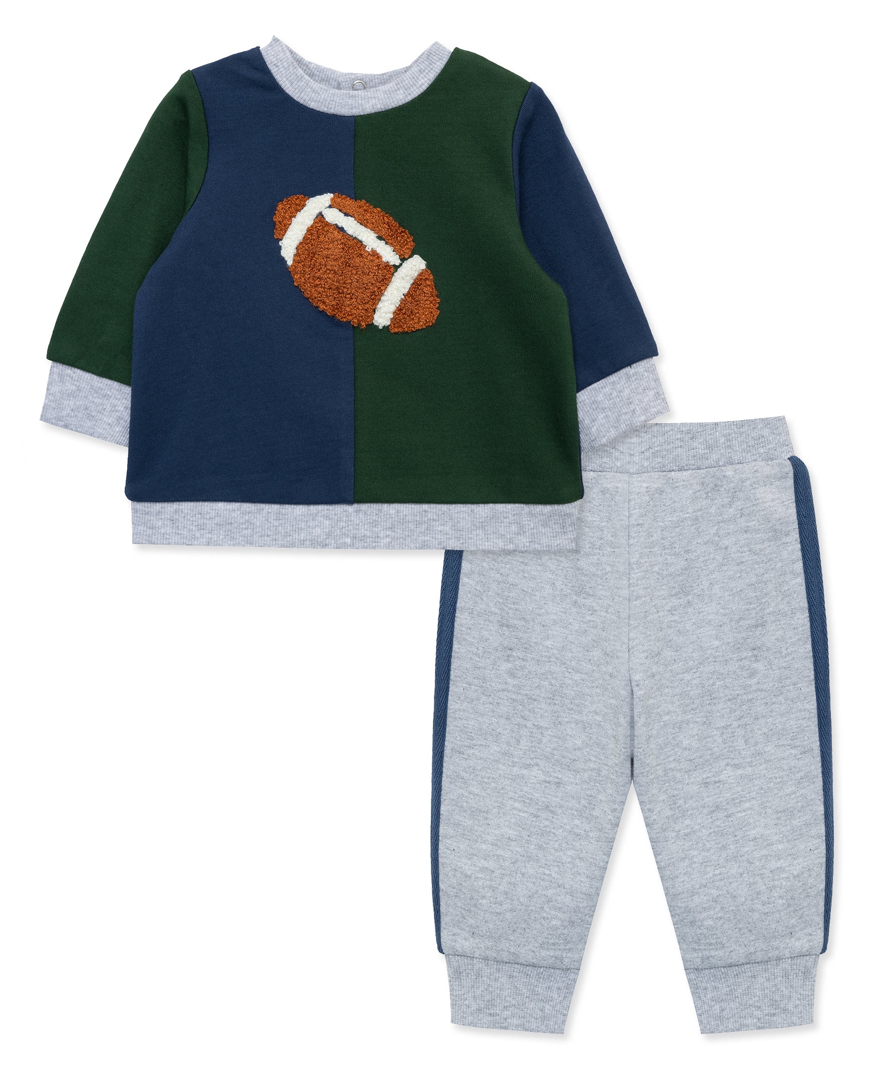 Hudson Baby Infant Boy Cotton Bodysuit and Pant Set, Football Huddles Short-Sleeve