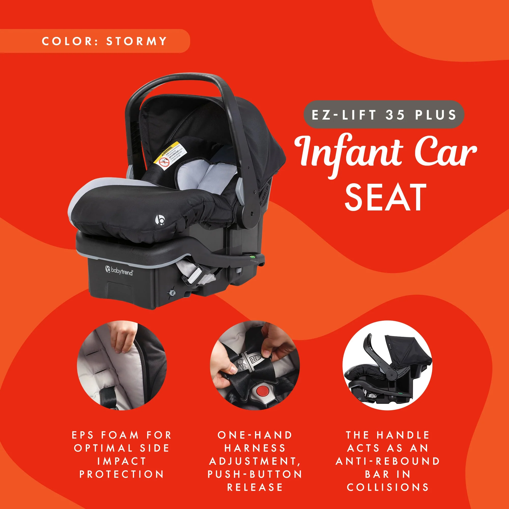 • Baby Trend EZ-Lift Plus Lightweight Infant Car Seat, Cozy Cover & Base, Stormy
