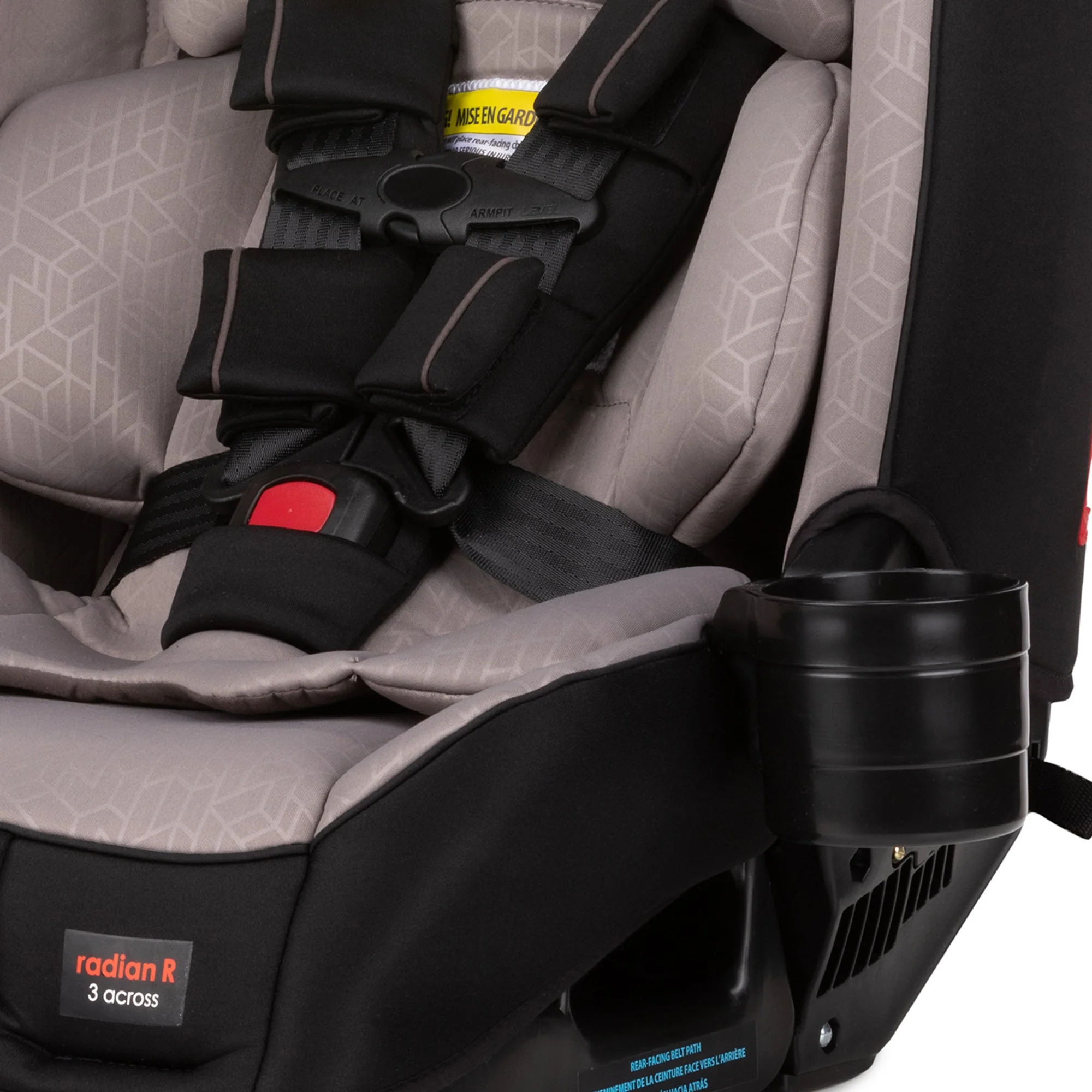 Lovingly finished with exclusive contemporary fabrics, the car safety seat is engineered with a steel-reinforced frame for 10 years of use. The convertible car seat provides safe and comfortable baby positioning thanks to the 2-in-1 infant liner with integrated newborn baby travel high wedge which helps reduce head slump to keep airways open. As your baby grows, simply remove the wedge to allow the liner to give extra comfort and support. Designed and engineered with complete rear-facing protection, this car seat is suitable for up to 50 pounds. Transition from rear-facing to forward-facing using the adjustable, 12-position headrest and rest easy knowing the SuperLATCH system is super easy to install. The slim-fit design will fit 3 across most vehicles without compromising child safety or passenger comfort and the steel-reinforced cup holder stores essential road trip drinks and snacks. The Radian is also aircraft certified (FAA approved), so you can take safety with you wherever you go.