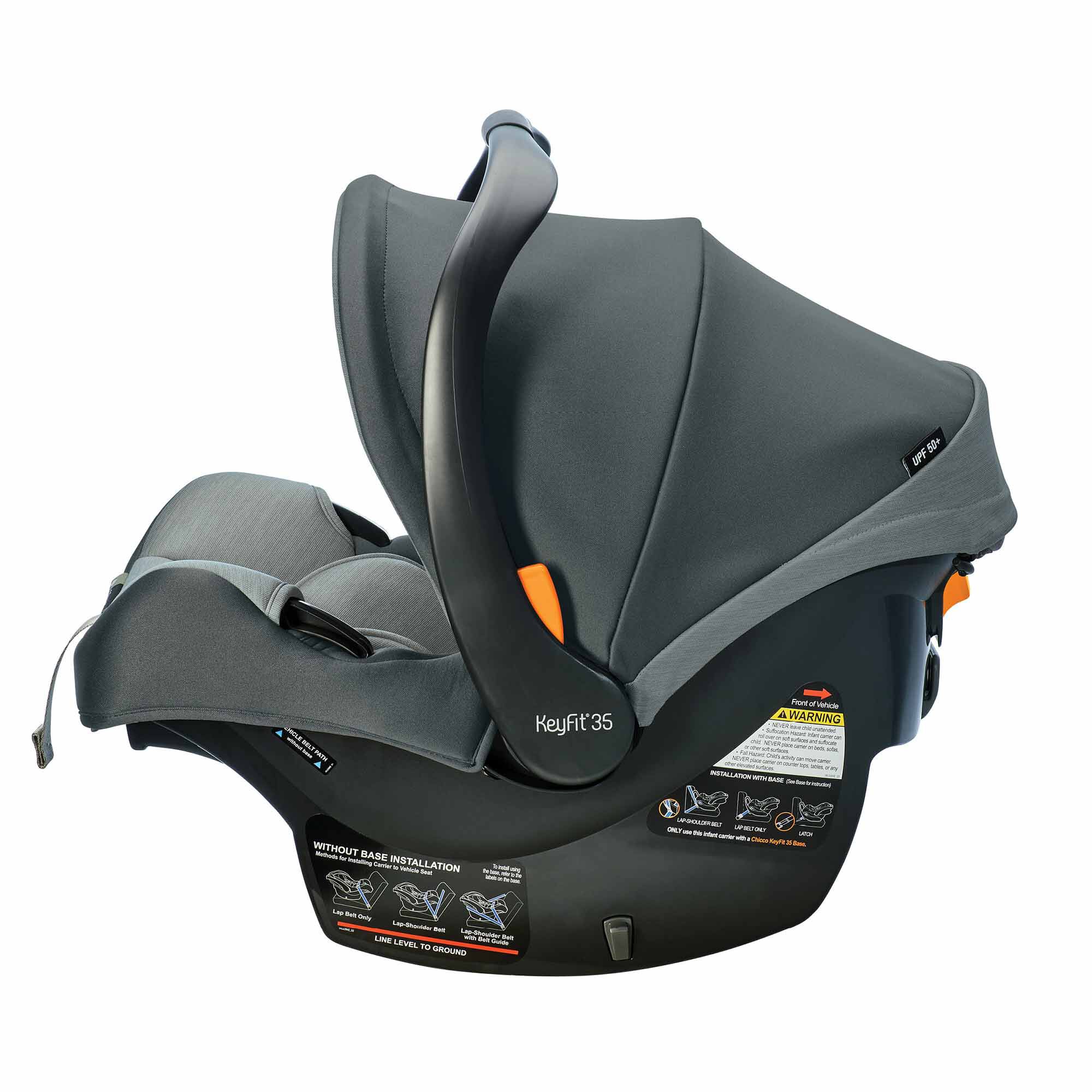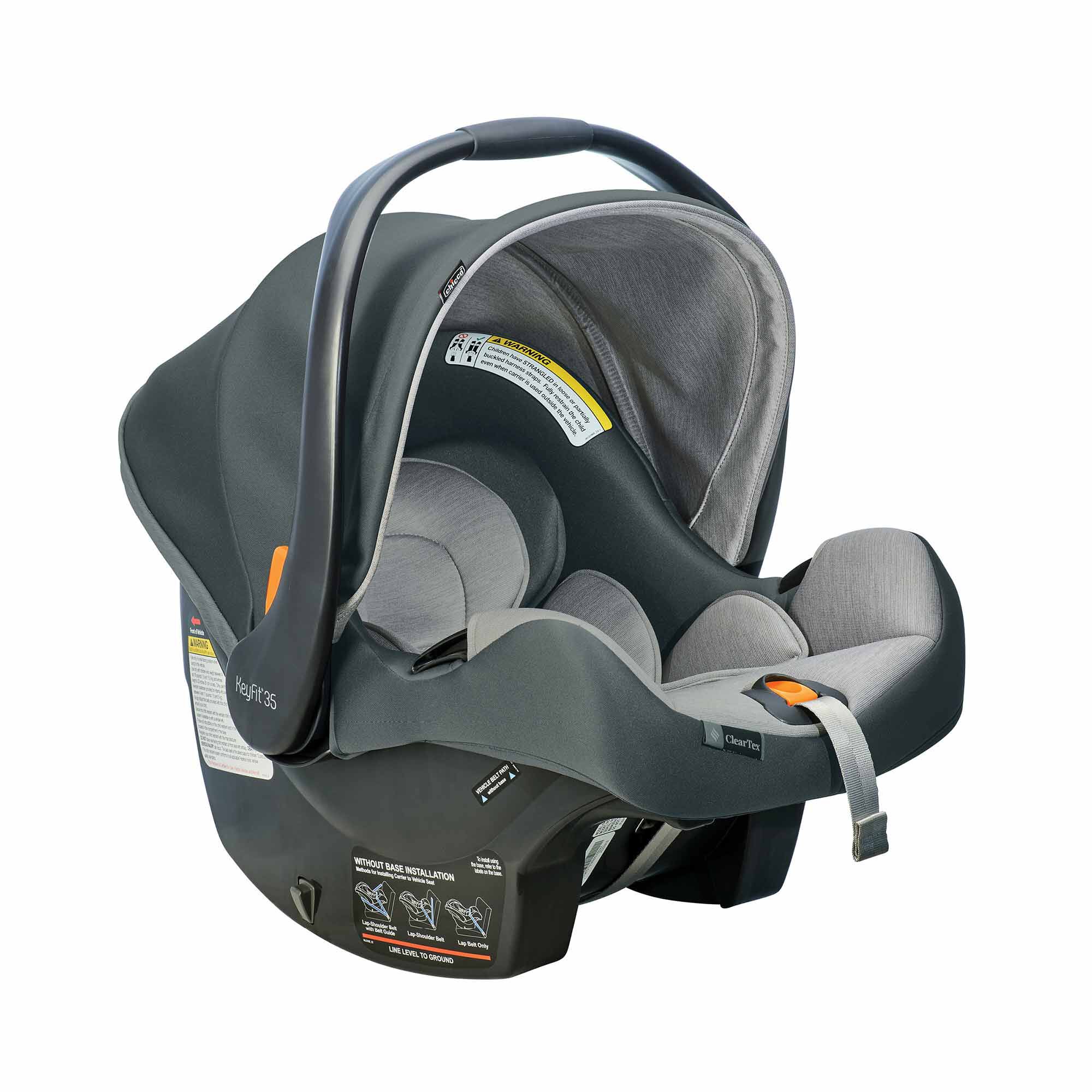 The KeyFit 35 ClearTex Extended-Use Infant Car Seat from Chicco offers more headrest height and legroom for extended rear-facing use. From textiles to tags, it features no added chemicals, and top-rated safety features make it the easiest to install.