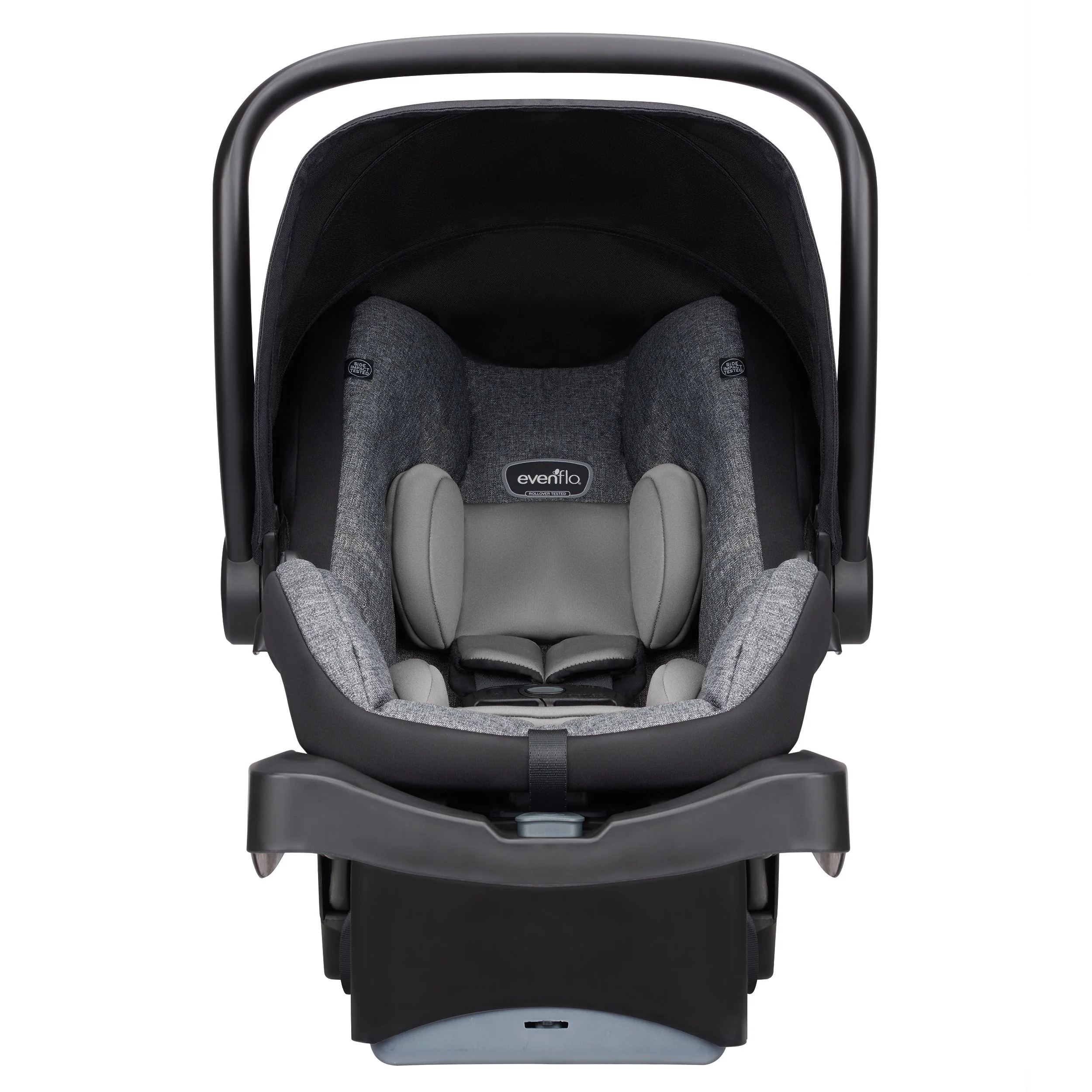 A little convenience goes a long way during the busy first few months of your child’s life. The Evenflo® LiteMax™ 35 delivers and then some, with a super lightweight, easy-to-carry car seat that your baby won’t outgrow overnight. Designed for infants weighing 4–35 lb, this lightweight wonder is a breeze to install, but a heavy weight when it comes to comfort and belting in your child for maximum safety. At Evenflo, we go above and beyond government standards to create car seats and bases that are safe.