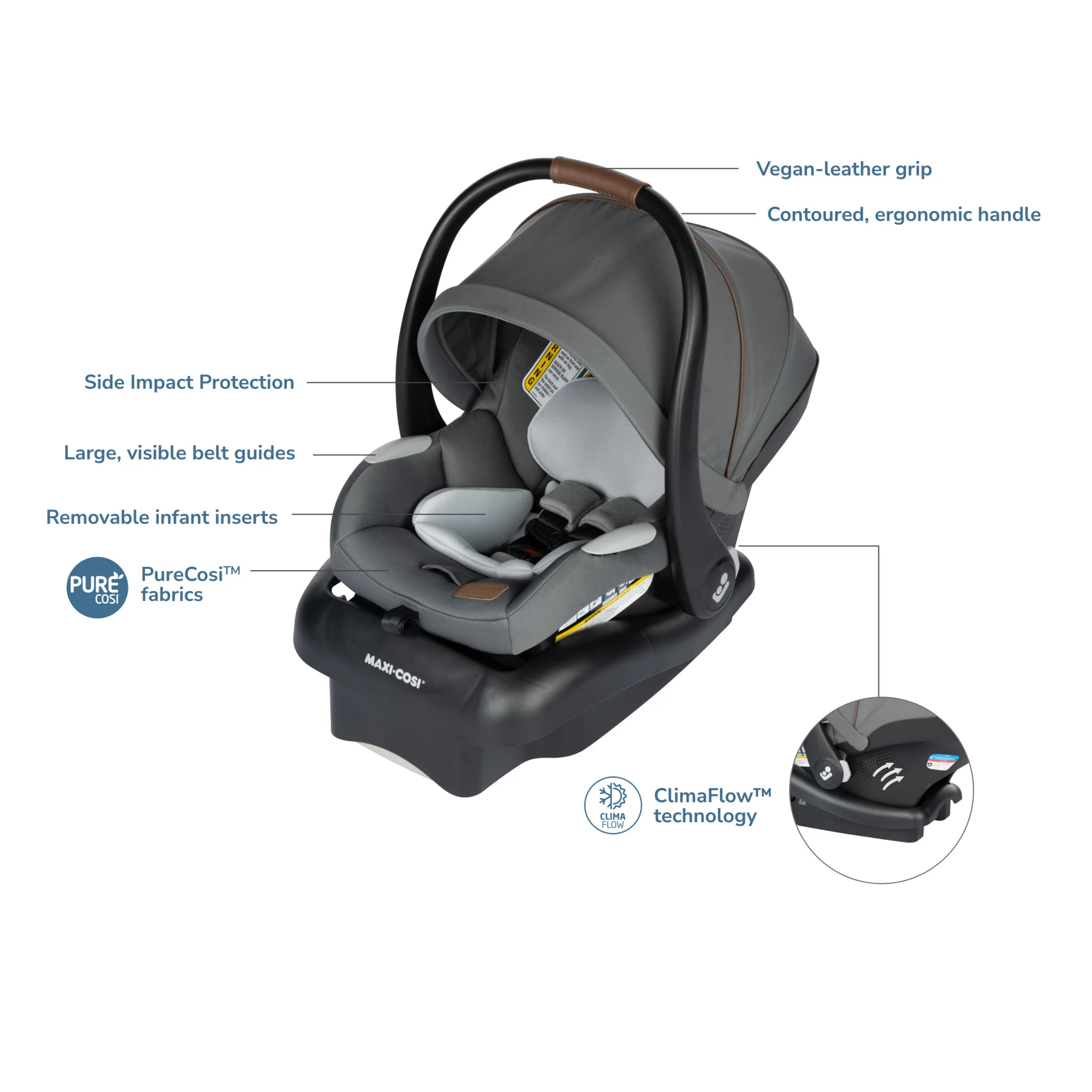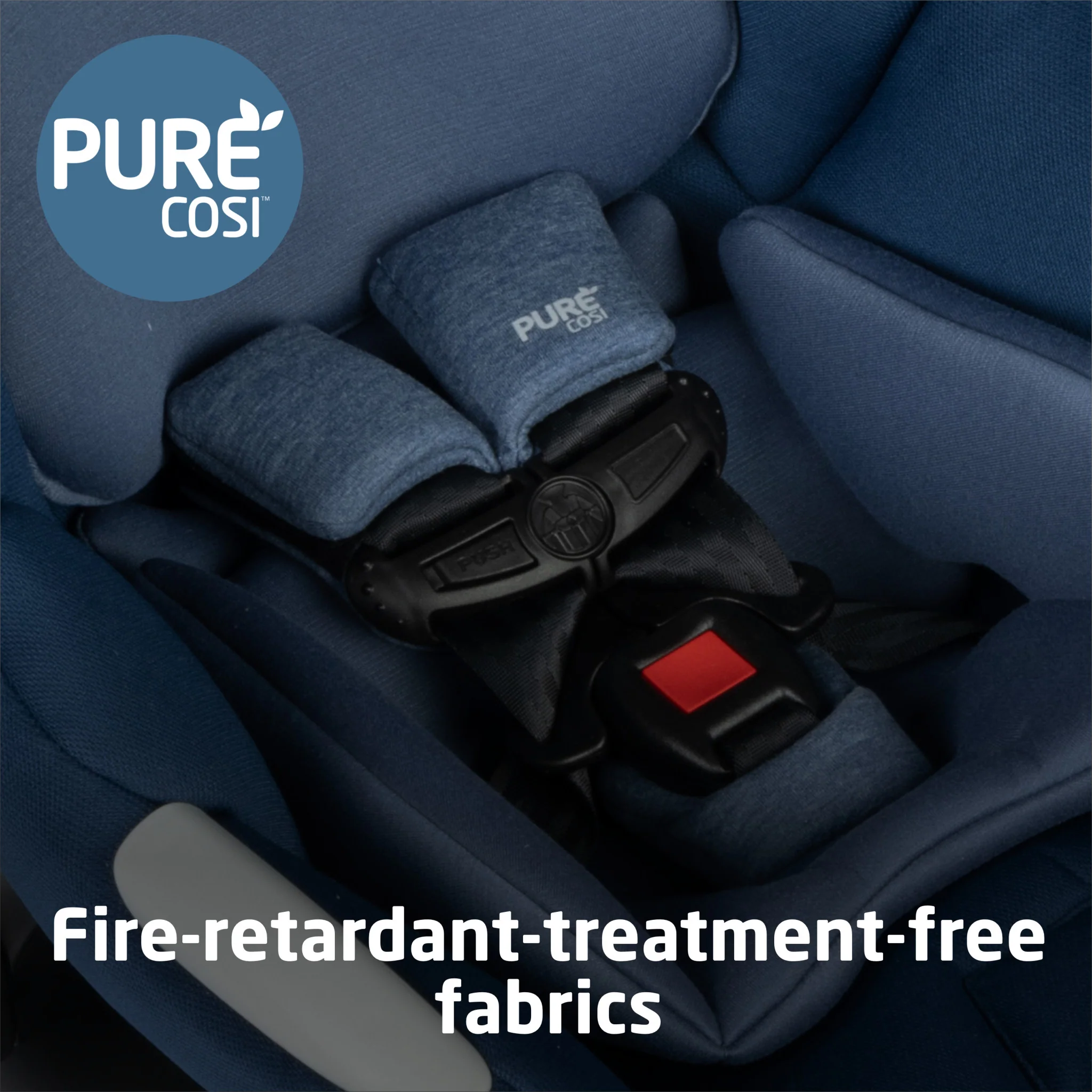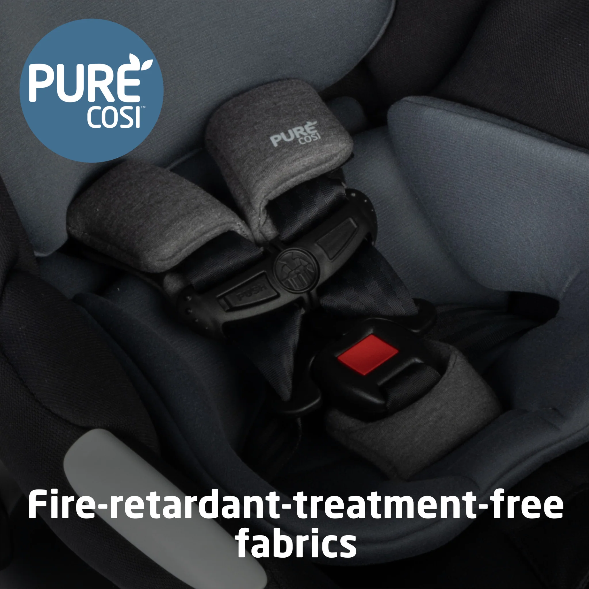 - DESIGNED WITH PURECOSI TM BY MAXI-COSI PureCosi fire-resistant fabrics and foam are made without wool or added fire retardant treatments which is better for your child and our planet. All fabric car seat cushions are machine washable and dryer safe.