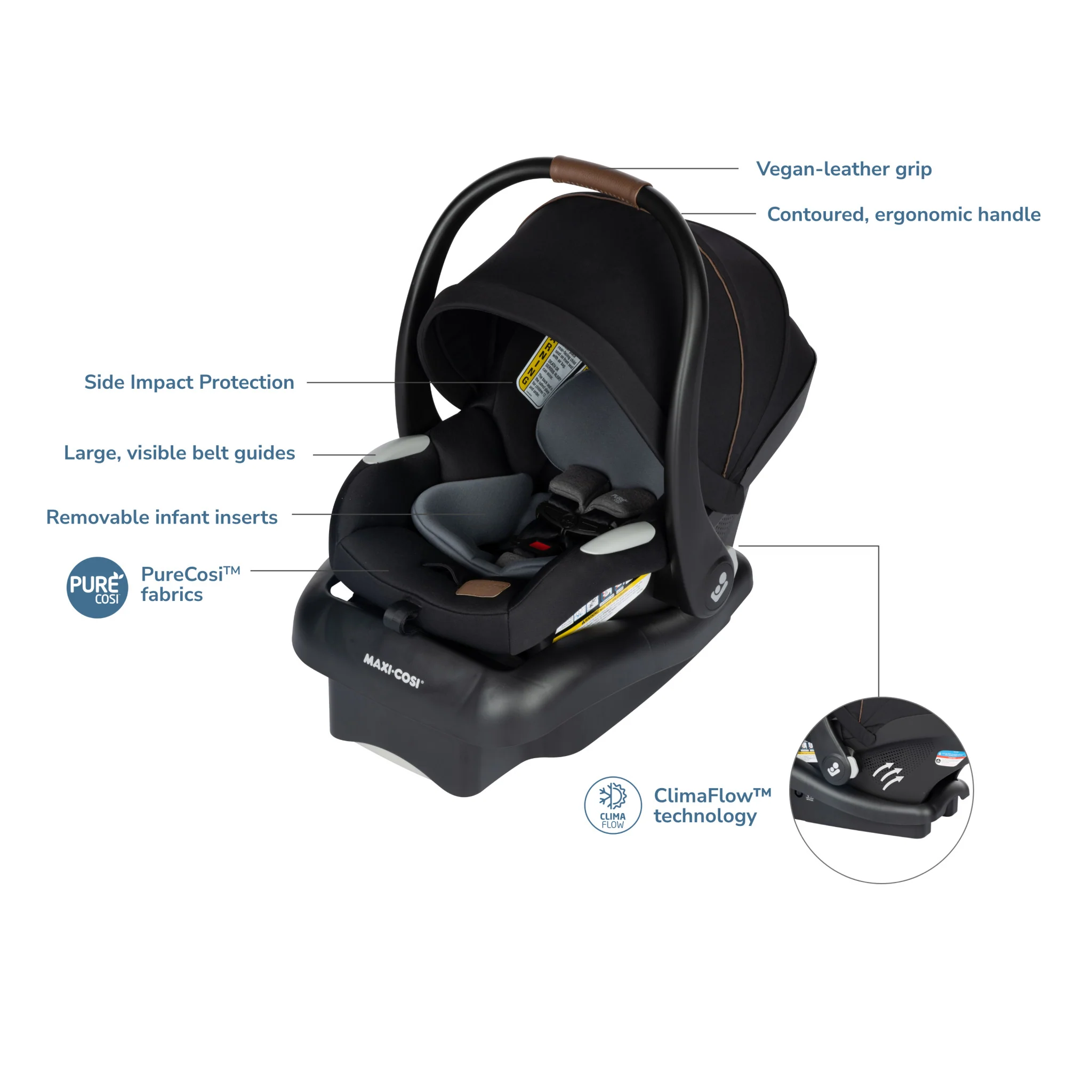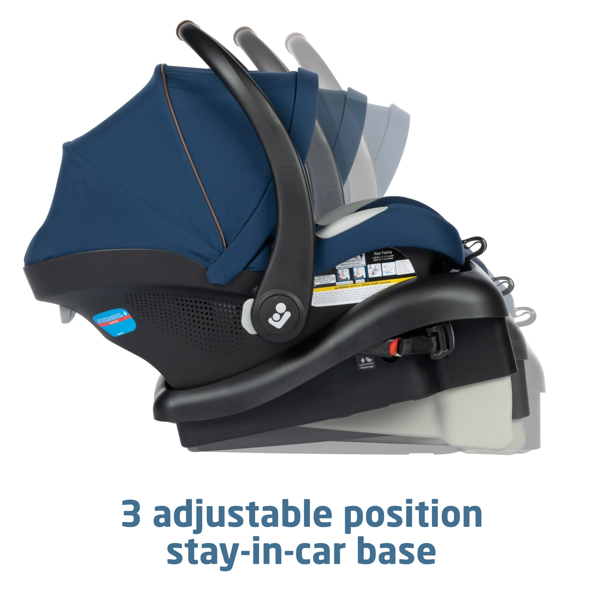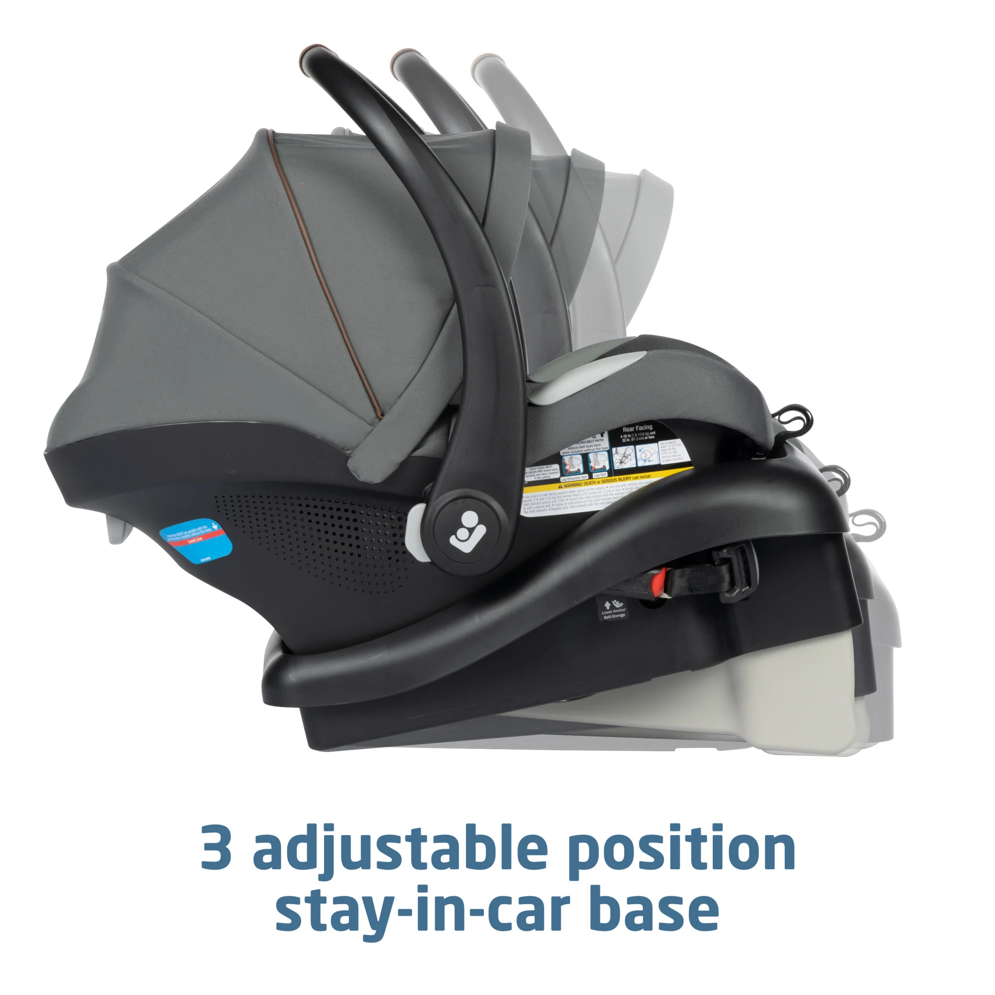 - ADDITIONAL FEATURES YOU’LL LOVE 5-point harness. Stay-in-car adjustable base with 3 positions. 1-handed release from car seat base and stroller. Compatible with select Maxi-Cosi strollers for a complete travel system. Seat rated 4–30 lbs. or up to 32”.