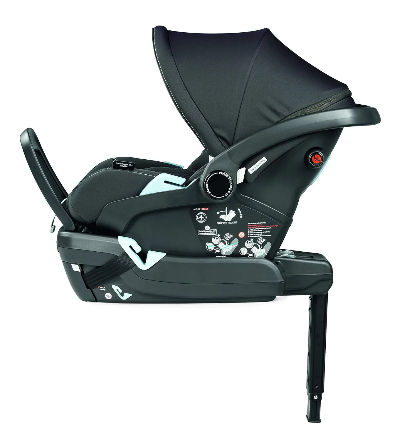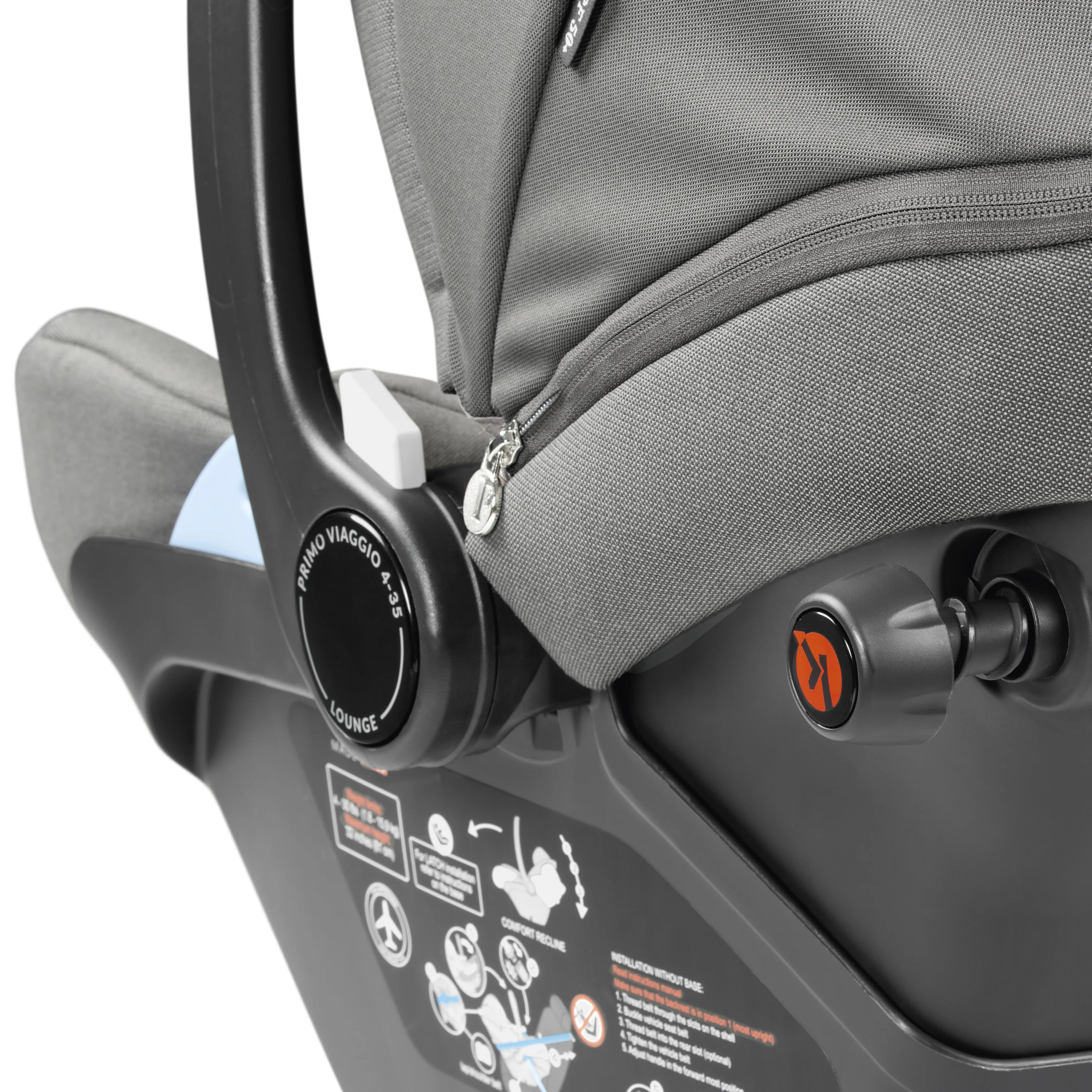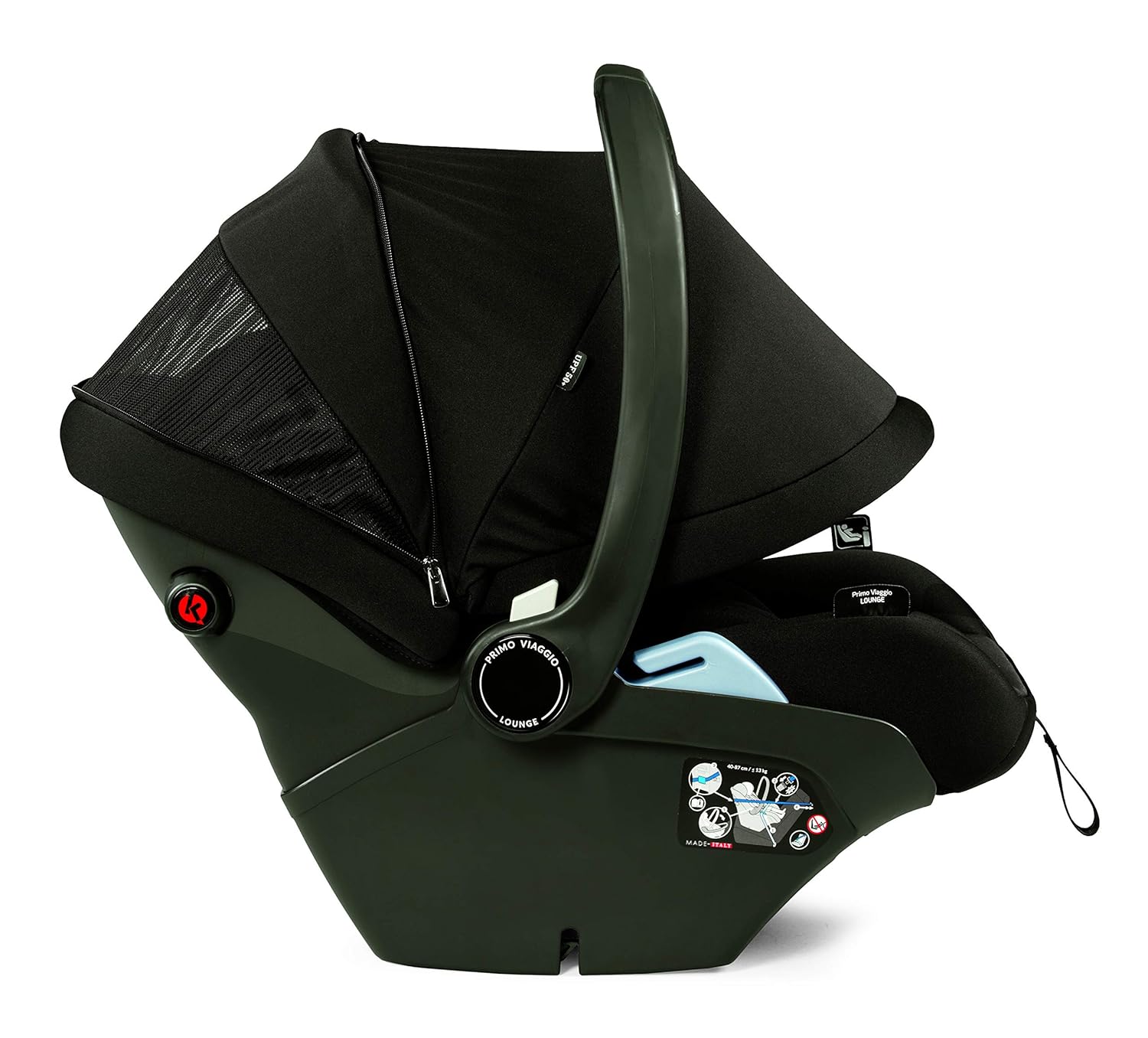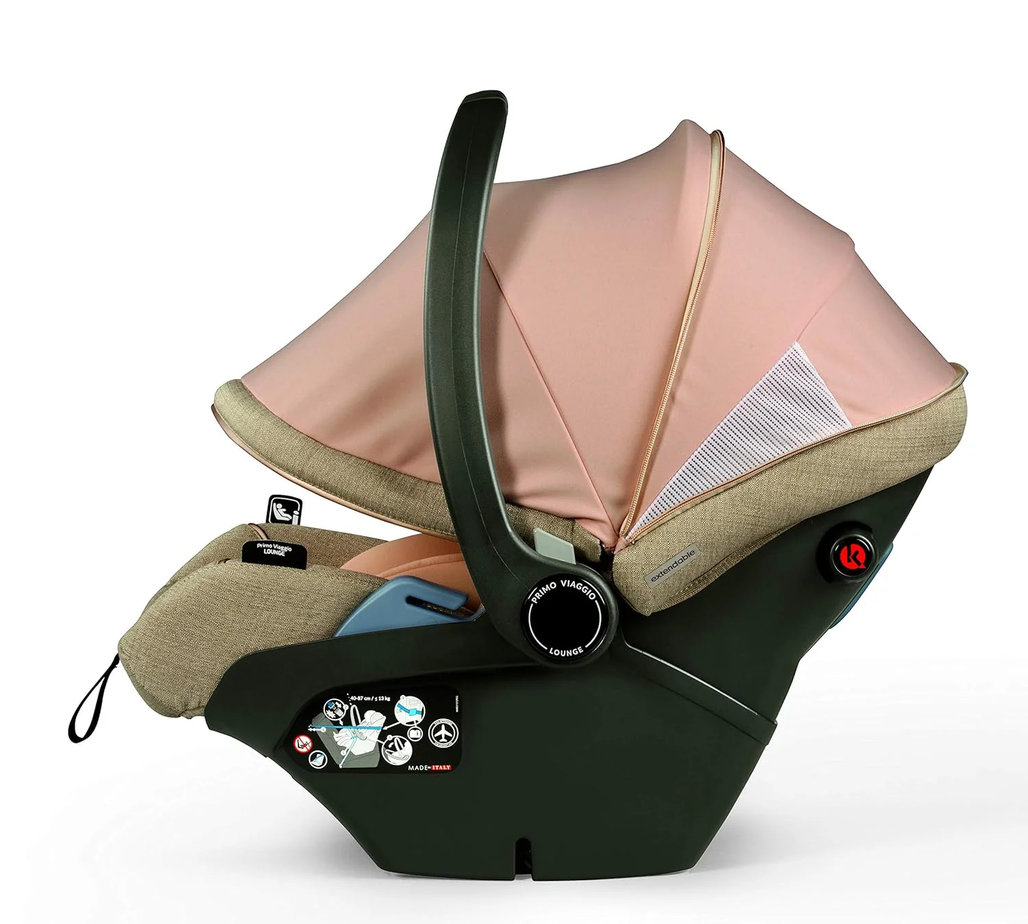 Made in Italy. The Primo Viaggio 4-35 Lounge car seat for babies features the comfort Recline function: The backrest reclines and the leg rest extends, allowing the child to lie down in the best ergonomic position when used on a stroller. The extendable Pagoda Hood provides full coverage, shielding baby from outside elements. The Load Leg base and anti-rebound bar reduce rotation in case of an accident, the new kinetic pods offer enhanced side impact protection: Just a few of the innovative features that help protect your newborn.
