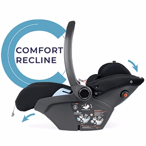 •    Made In Italy. Comfort Recline adjusts to 3 positions: sitting, relaxing, or lying down. The backrest reclines and the leg rest extends, allowing the child to lie down in the best ergonomic position when used on a stroller.