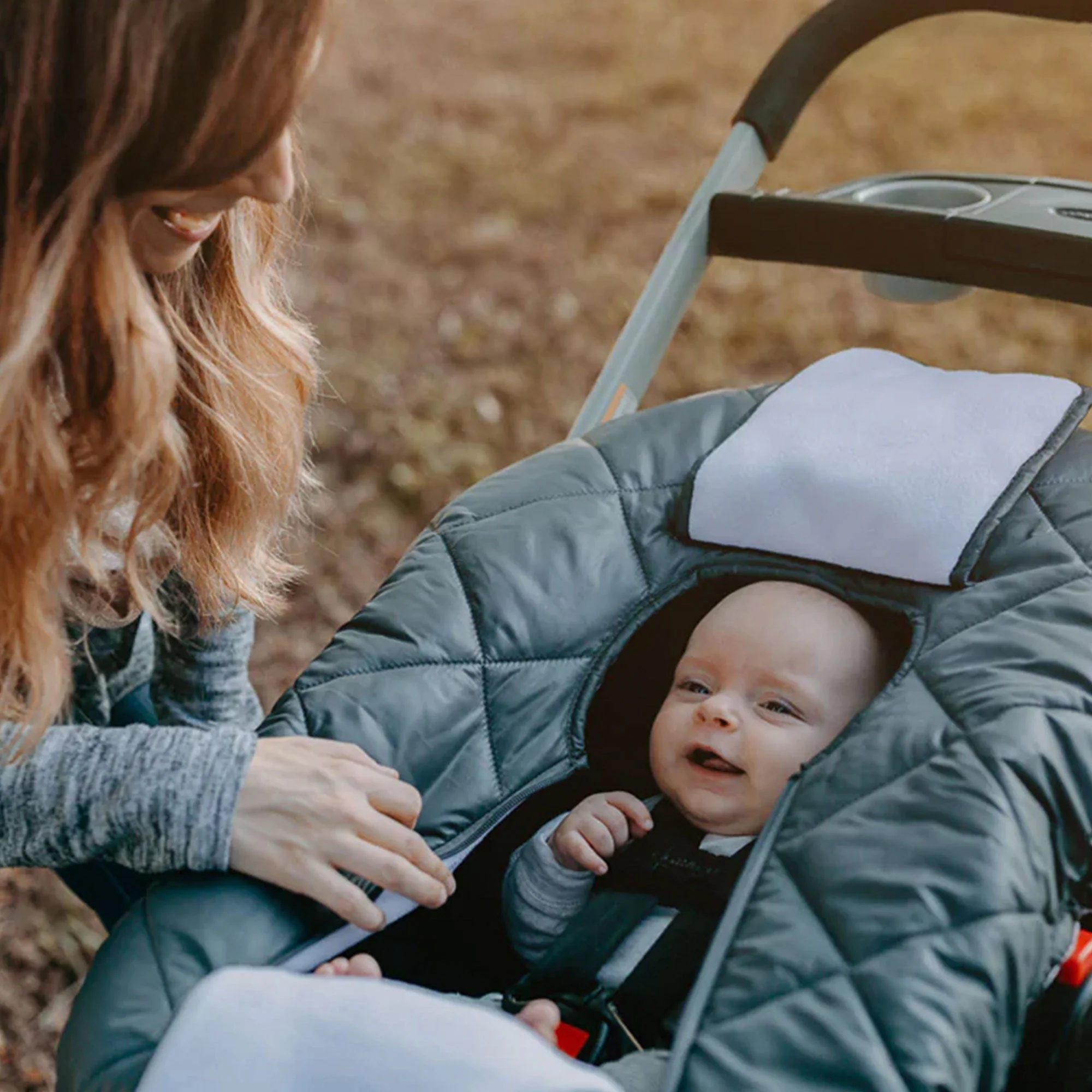 CozyBaby Quilted Infant Car Seat Cover with Dual Zippers and Elastic Edge, Gray