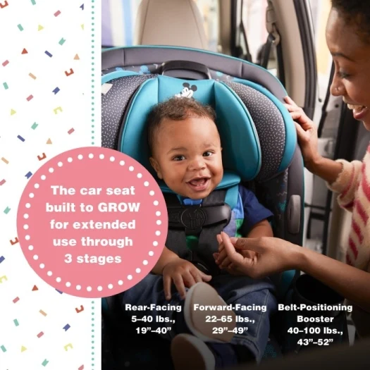 The Safety 1st Disney Baby Grow & Go Convertible 3-in-1 Car Seat is a safe option to grow with your tiny tot through the years. Suitable for newborns up to toddlers 52" tall, this car seat features front, rear and booster seating positions.