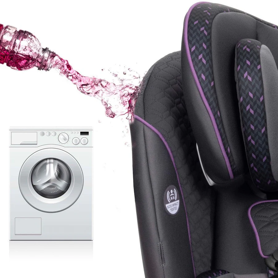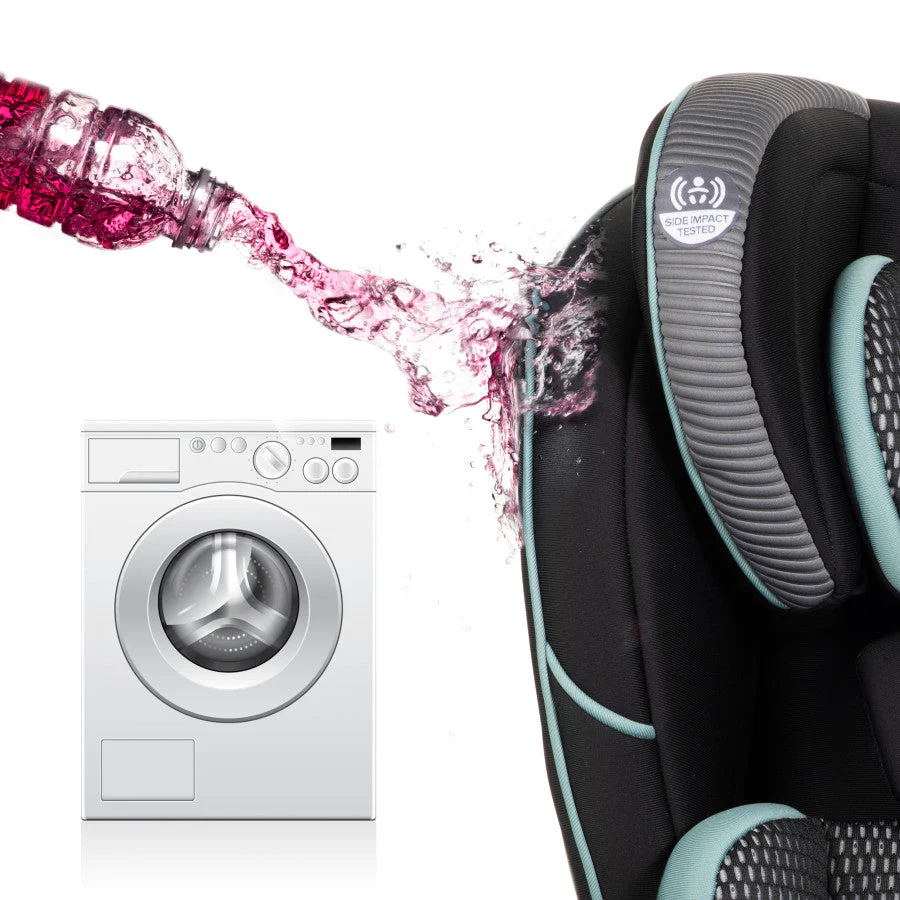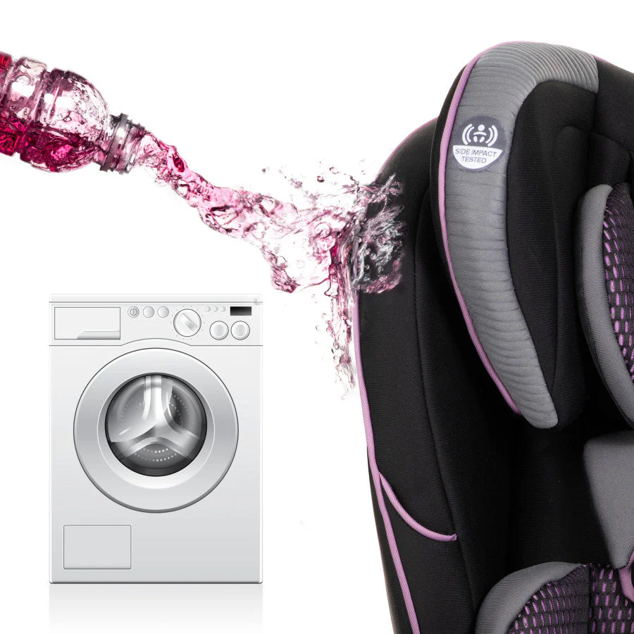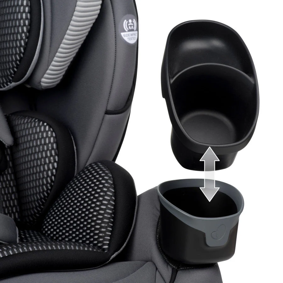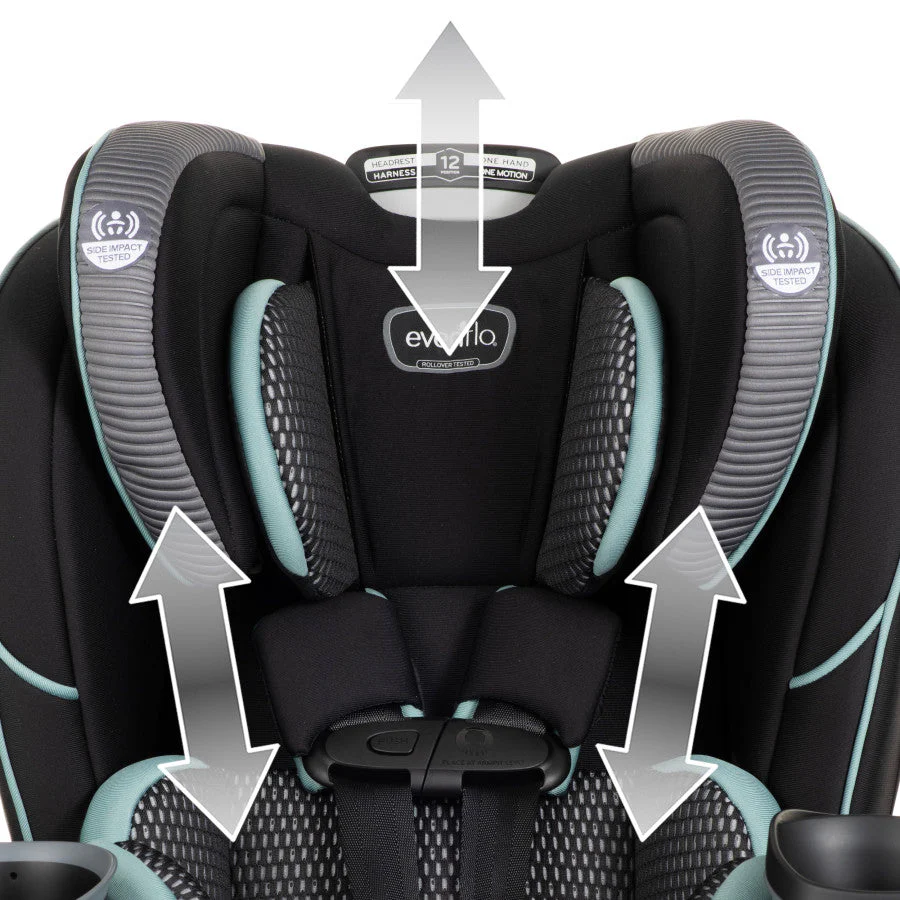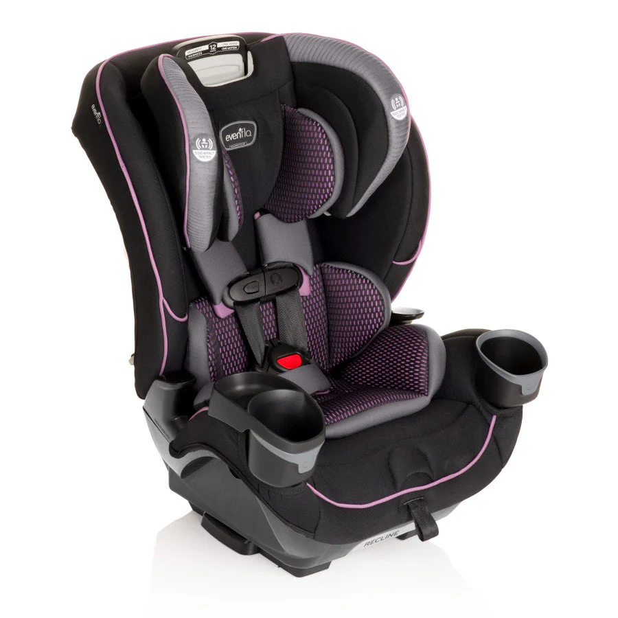 Evenflo works with parents to develop child-restraint products that are designed for how they are actually used. We’ve developed this 3-in-1 car seat with comfort, safety and ease-of-use in mind. The one-hand, 12-position headrest and no-rethread harness enable a proper fit during each ride and as child grows – without uninstalling the car seat. For additional convenience, this all-in-one car seat is designed with removable cushions, machine-washable fabrics, two integrated cup holders and removable snack tray.