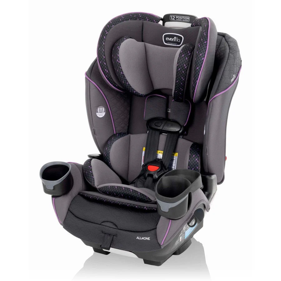 The Evenflo EveryFit/All4One 3-in-1 Convertible Car Seat has been engineered for maximum comfort, safety, and longevity. This car seat accommodates your child by adjusting to multiple positions, allowing kids to ride rear-facing beyond 2 years of age — without extending the seat or cramping other passengers. This all-in-one car seat provides a safe and secure ride for up to a decade. Parents and grandparents love the Quick Connector LATCH and belt guides for an easy and tight installation. It can be used as a rear-facing car seat with harness, forward-facing car seat with harness and belt-positioning high-back booster that helps keep children 4 - 120 lb secure while riding in a vehicle.